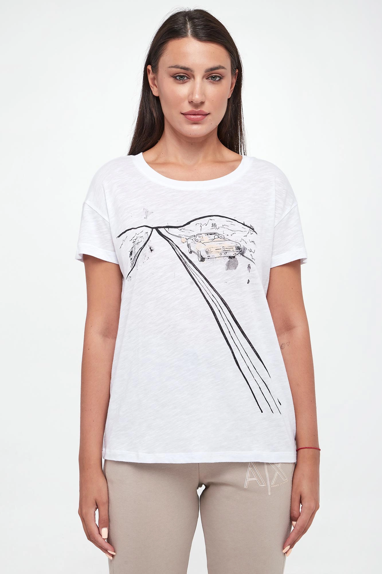 T-shirt damski marki Armani Exchange.