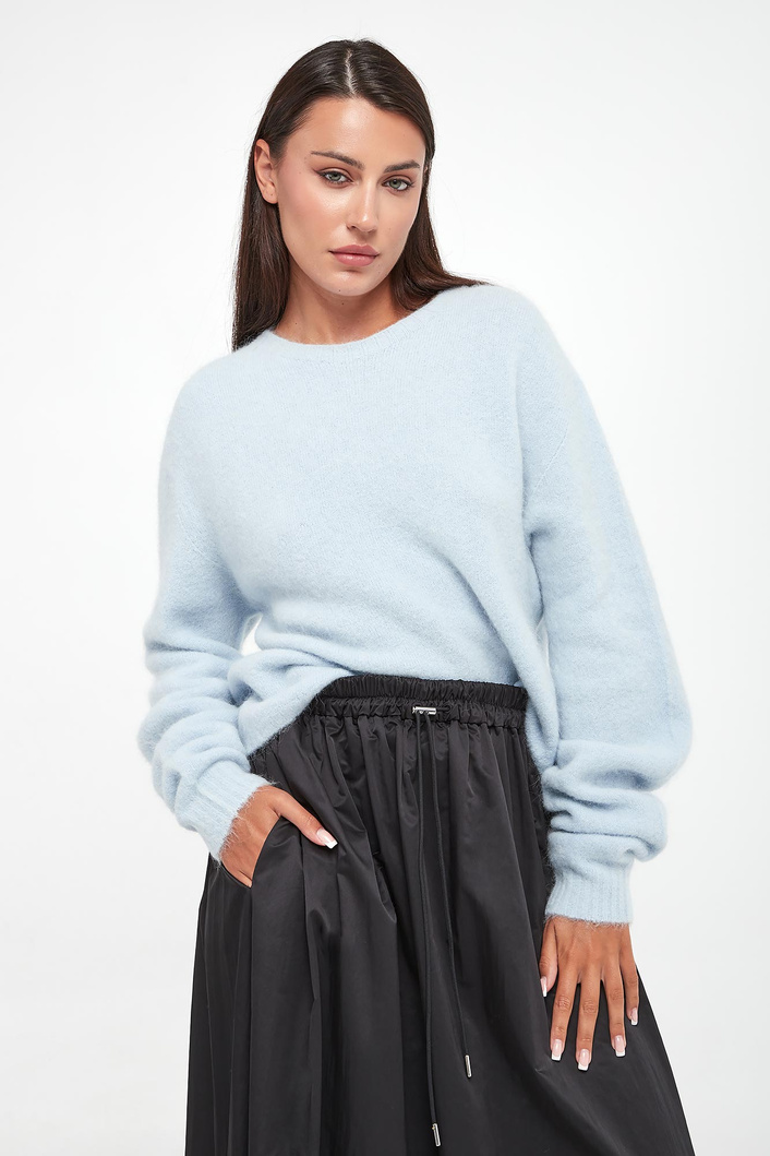 - Wykonany z dzianiny z dodatkiem wełny alpaki.