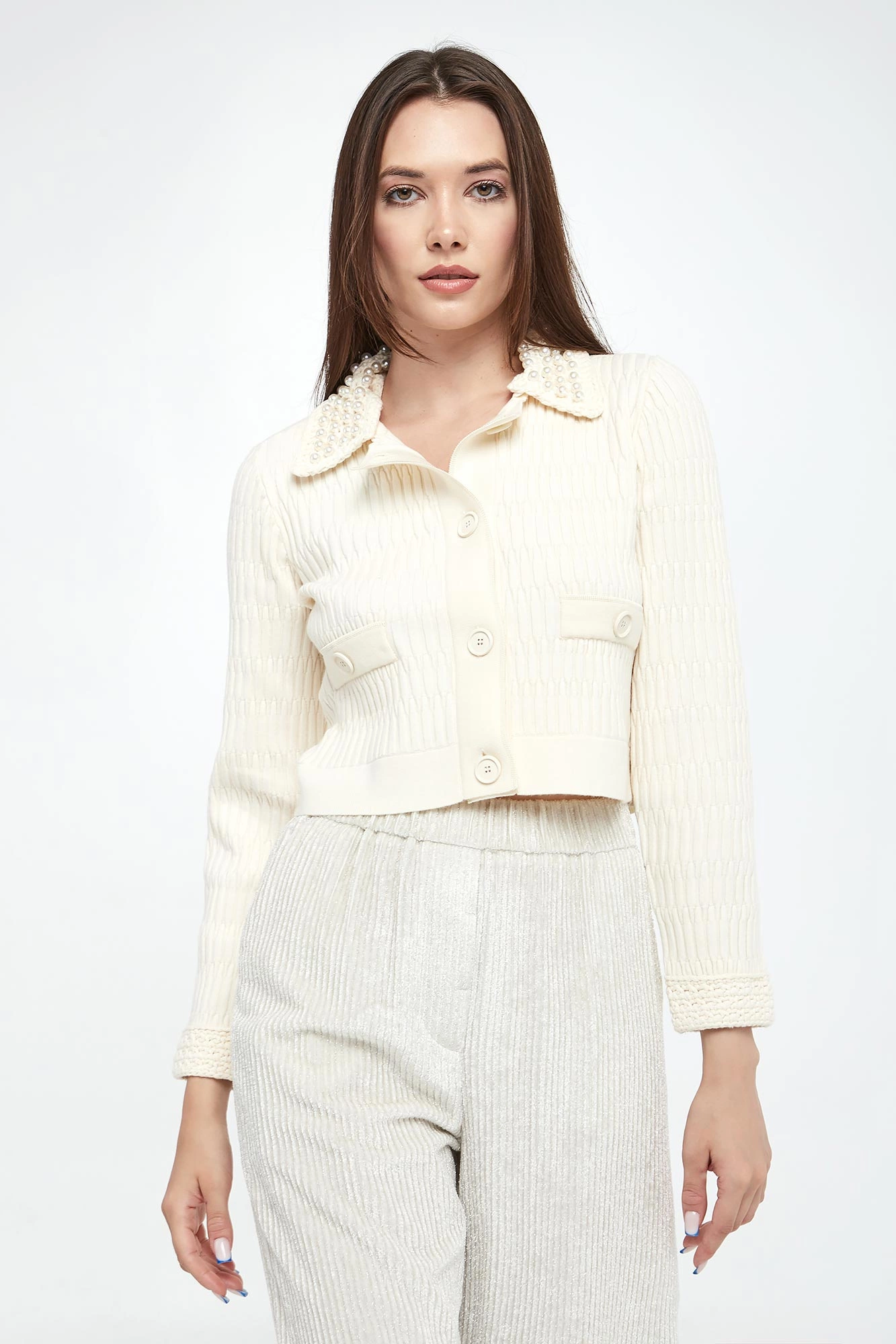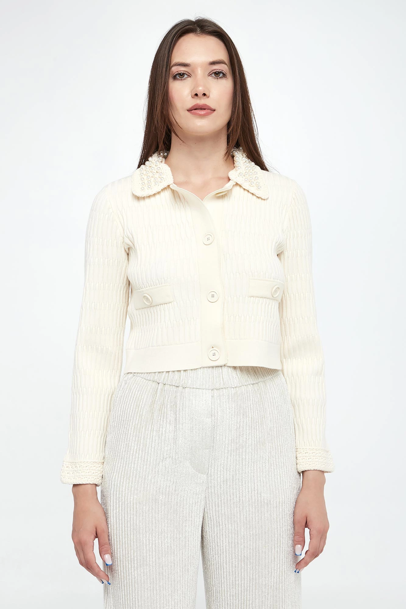 - Odpinany kołnierzyk ozdobiony koralikami.