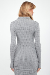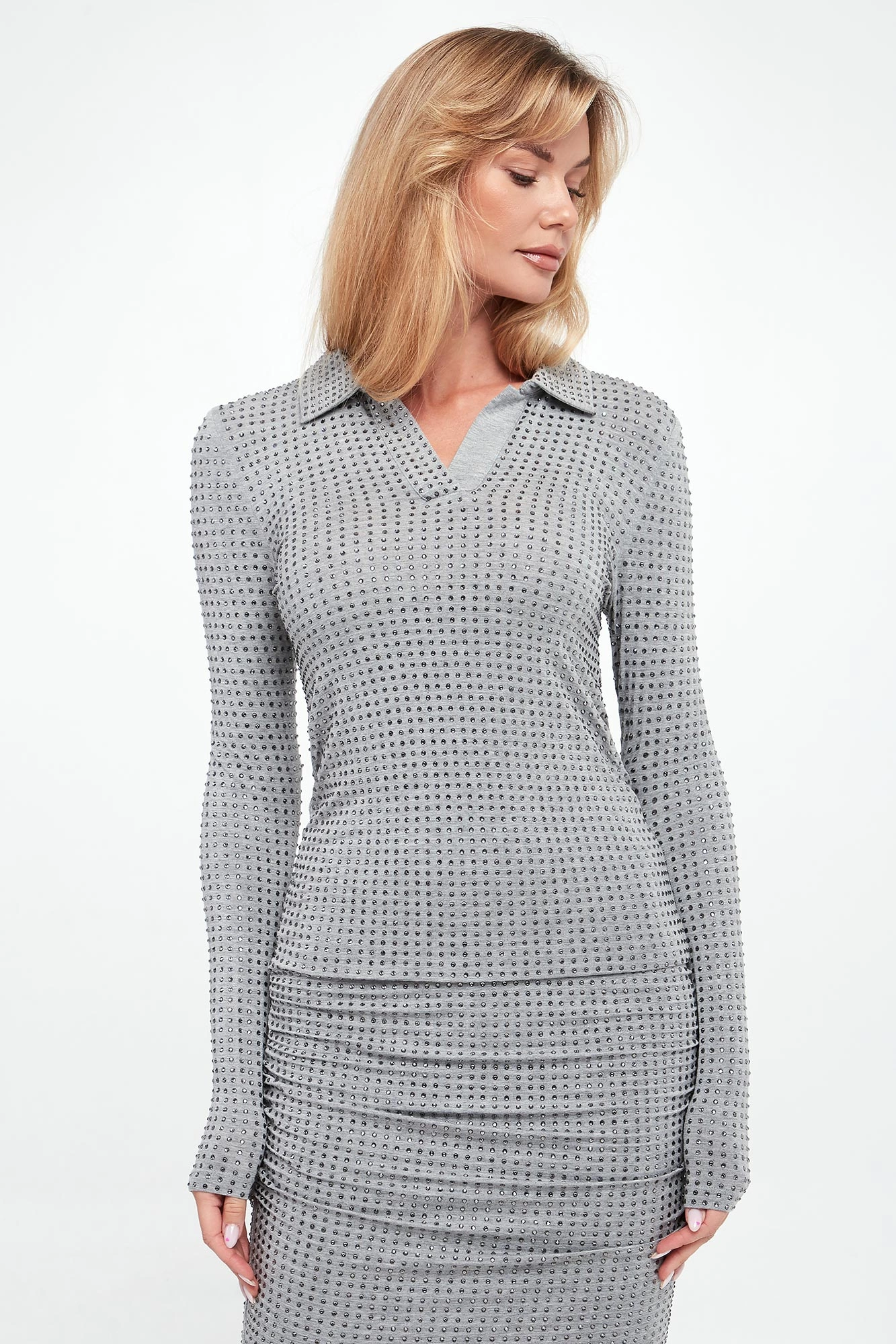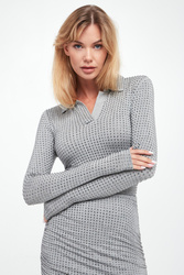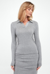 - Dekolt v-neck z kołnierzykiem.