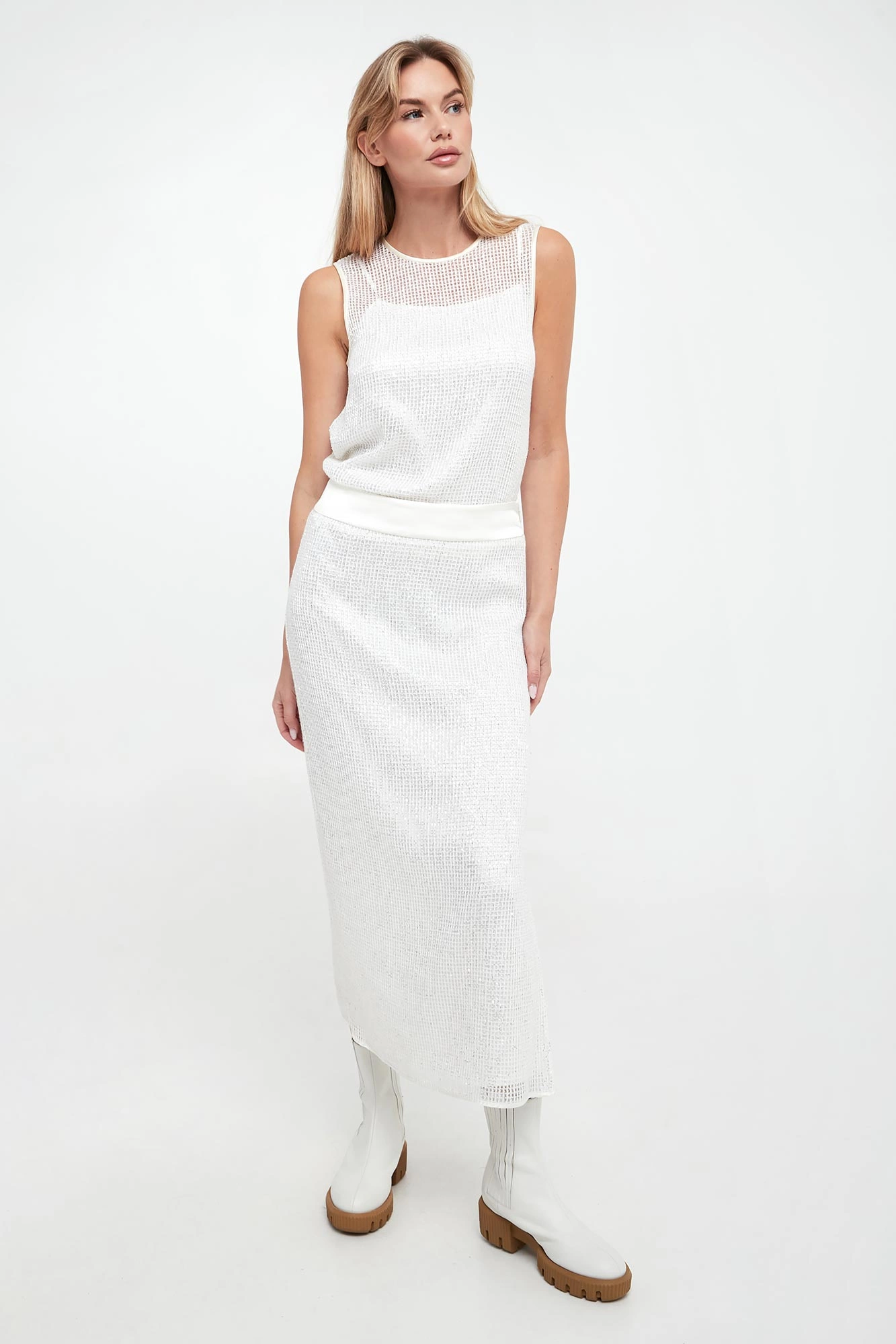 | Faktura: | Ażurowa Cekiny Dzianina swetrowa |
