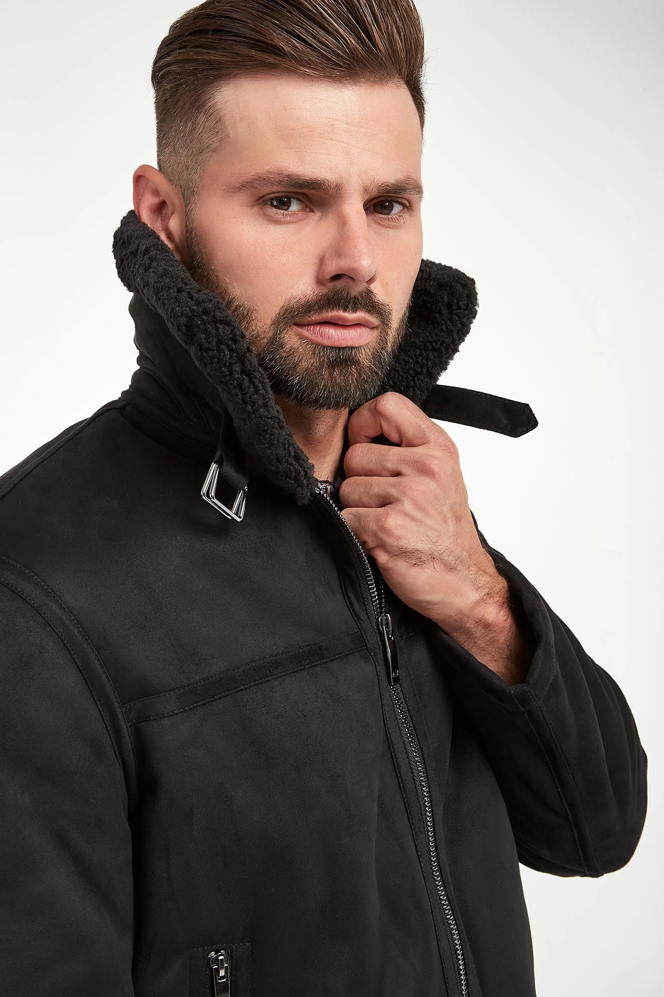 - Syntetyczny zamsz i futerko typu baranek.
