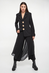 - Zapięcie na duże, złote, biżuteryjne guziki.