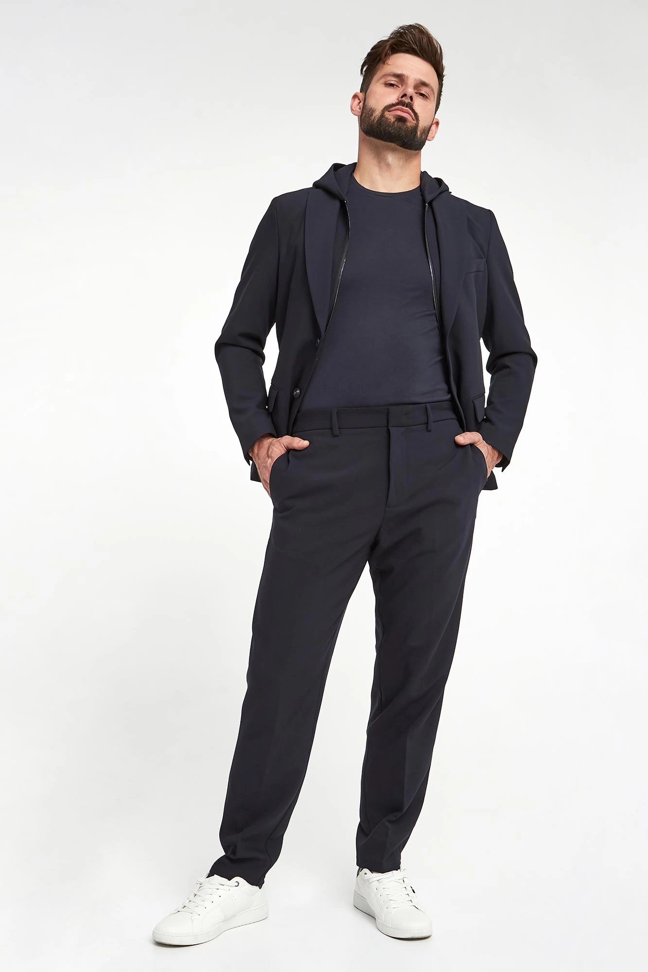 Model na zdjęciu, przy wzroście 184 cm, ma na sobie rozmiar 50.