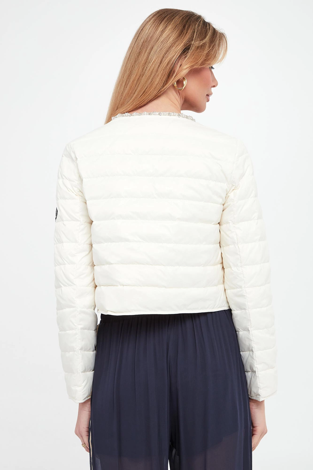 - Dekolt o-neck z biżuteryjnym zdobieniem.