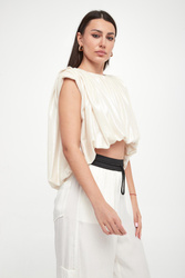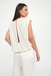 - Z tyłu wycięcie oraz zapięcie na guzik.