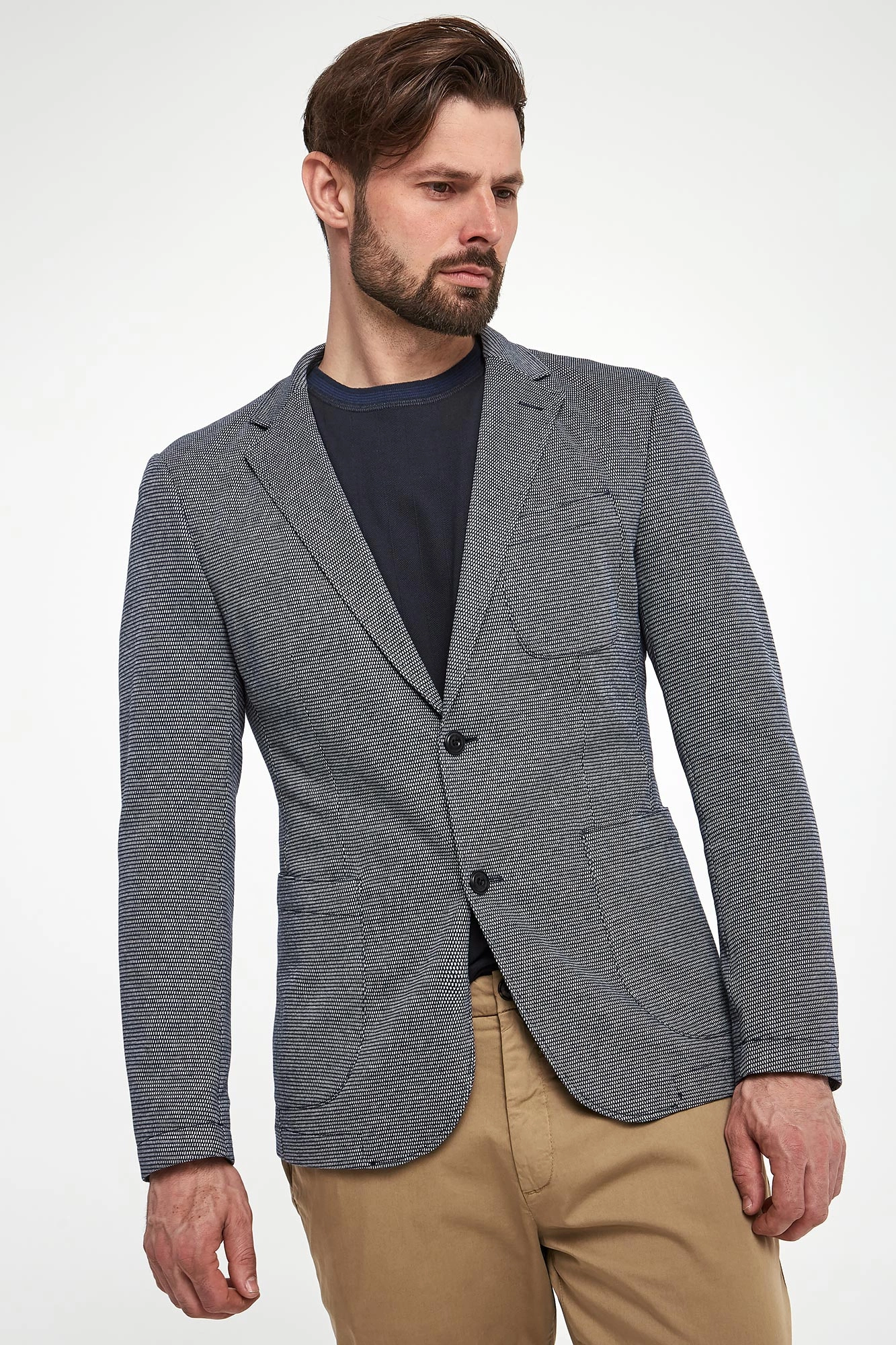 - Jednorzędowe zapięcie na guziki.