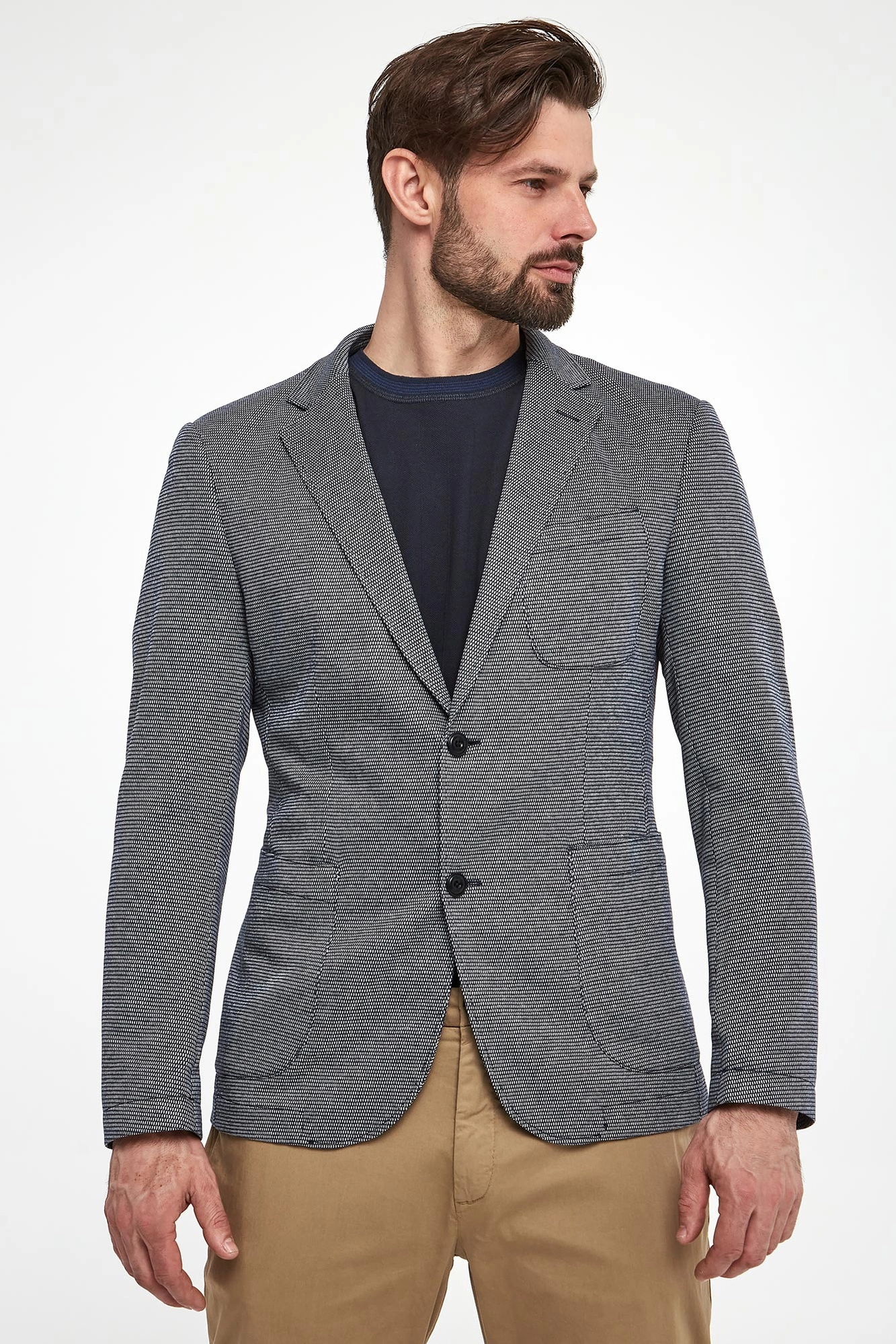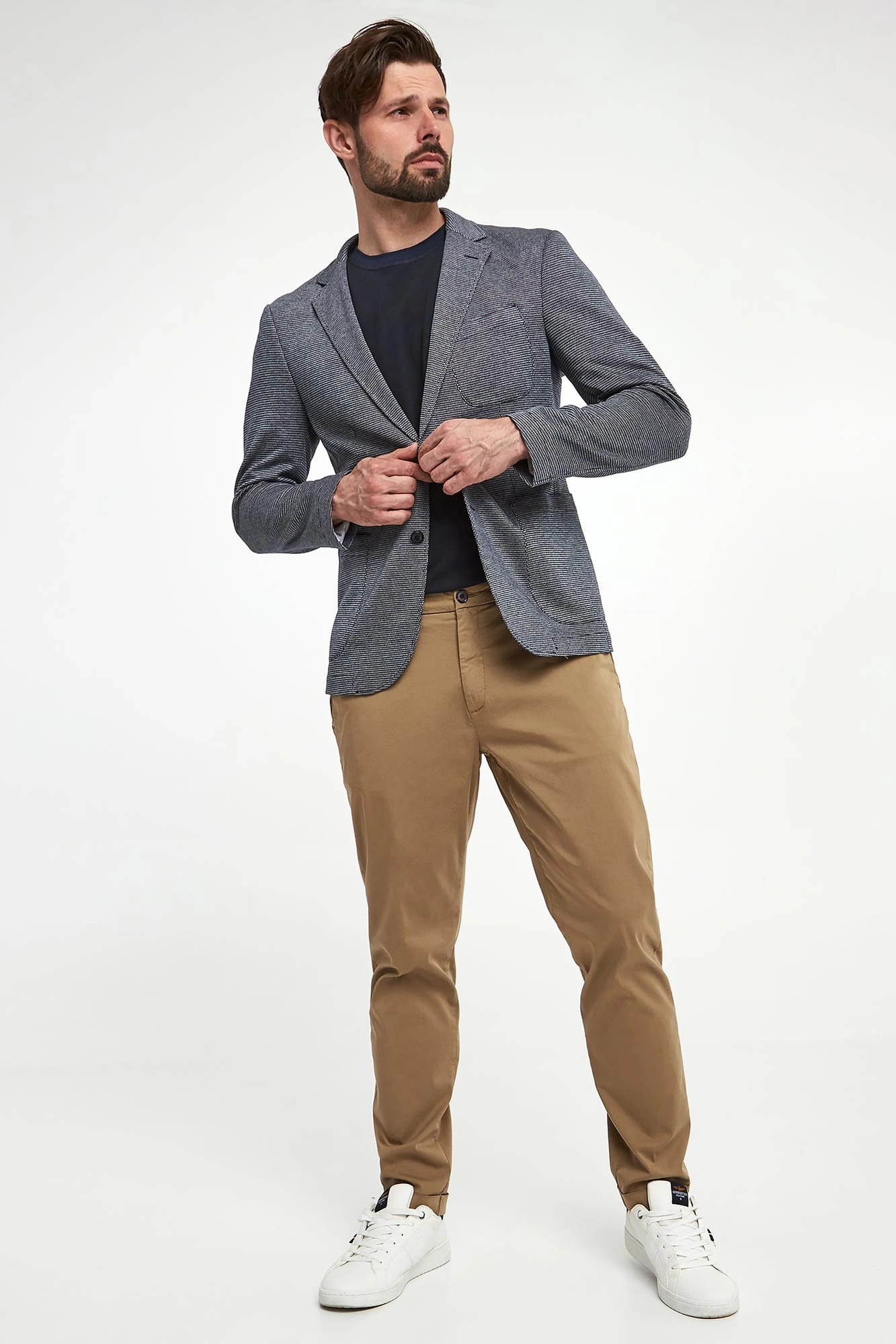 Model na zdjęciu, przy wzroście 184 cm, ma na sobie rozmiar 50.
