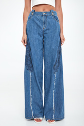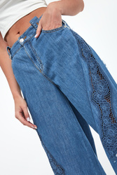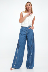 - Ażurowe zdobienie z haftowanymi kwiatami.