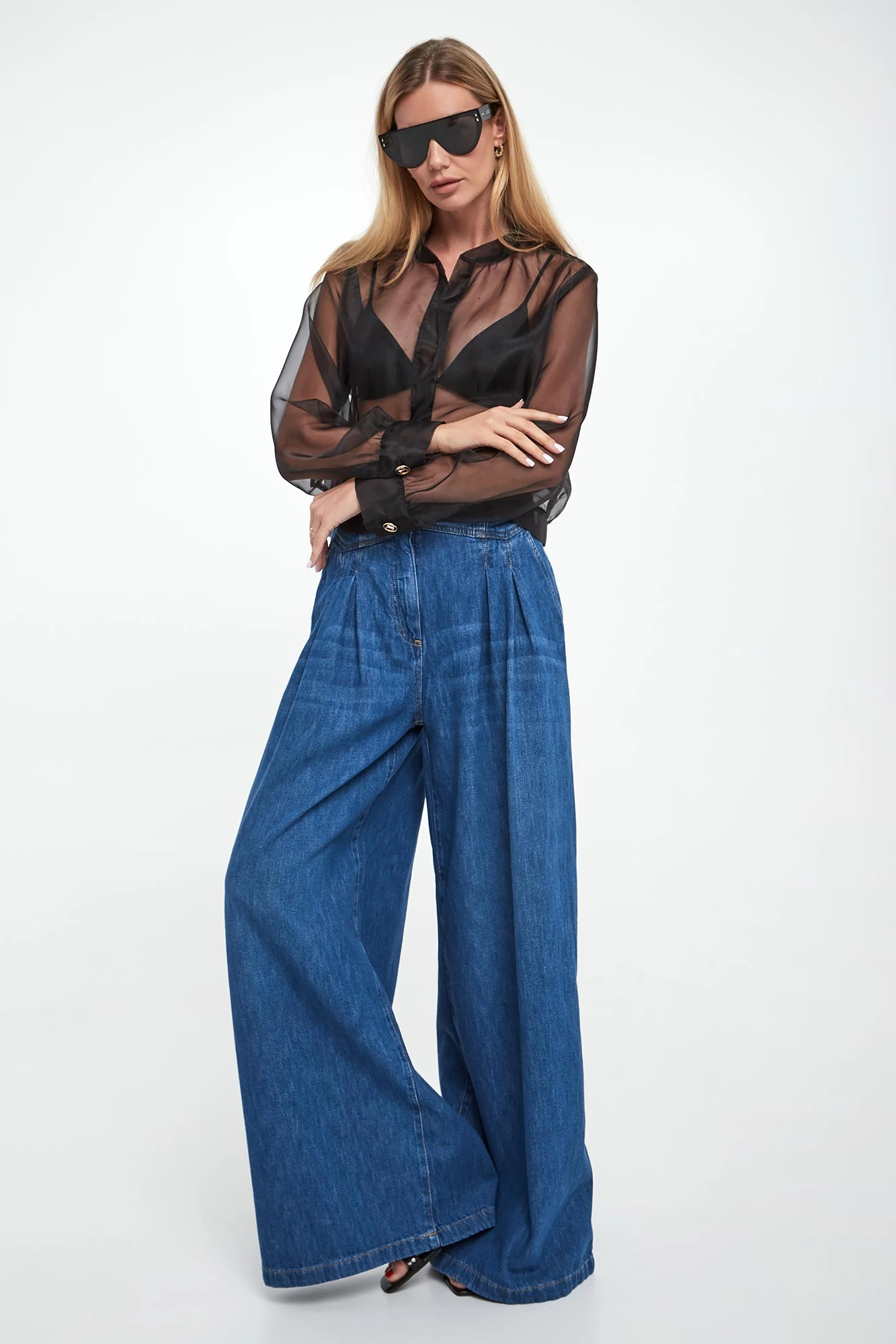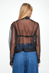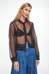 - Rękawy zakończone mankietami z sygnowanym guzikiem.
