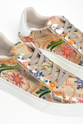 - Na całości wielokolorowy nadruk z motywem kwiatów.