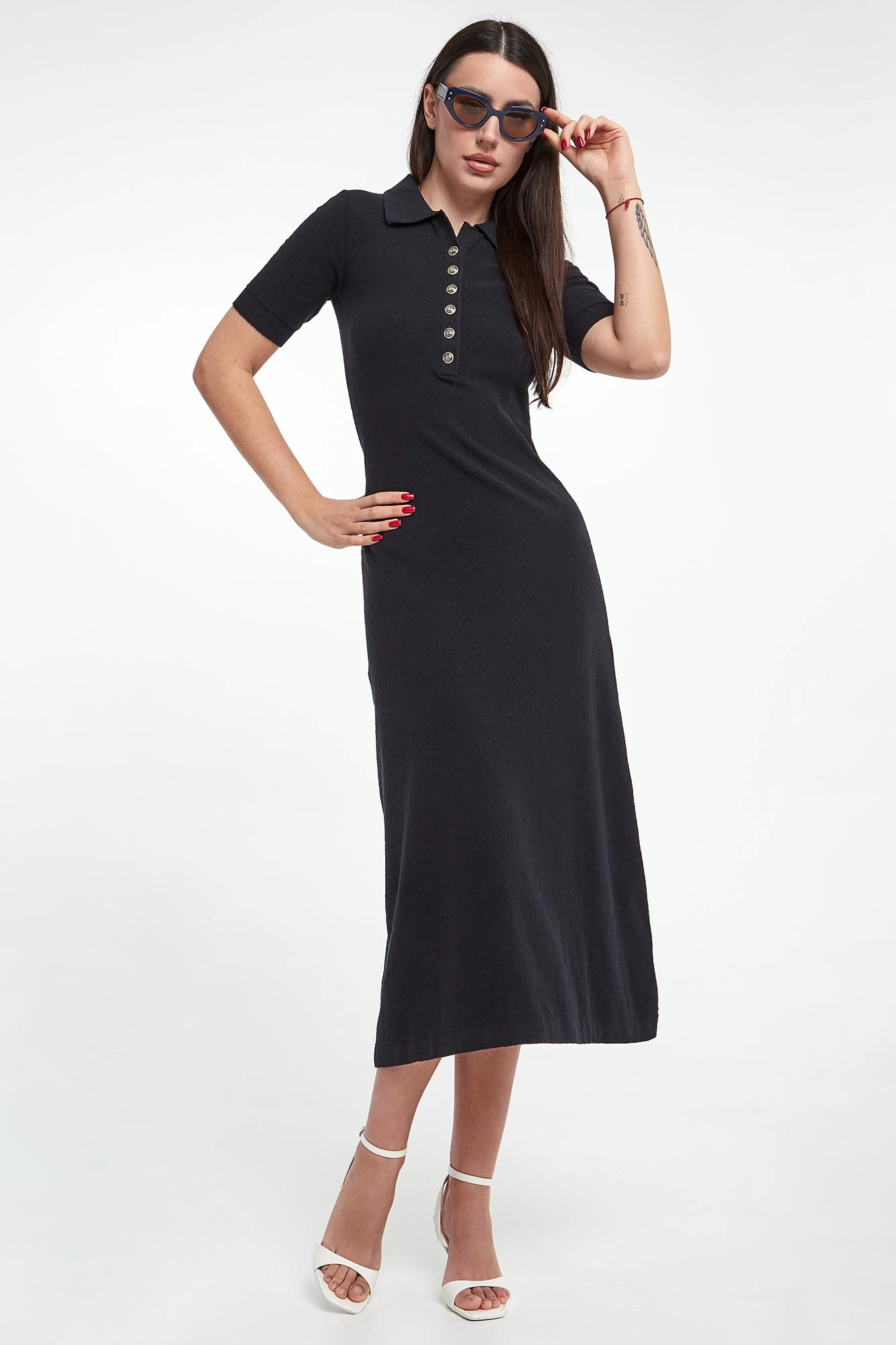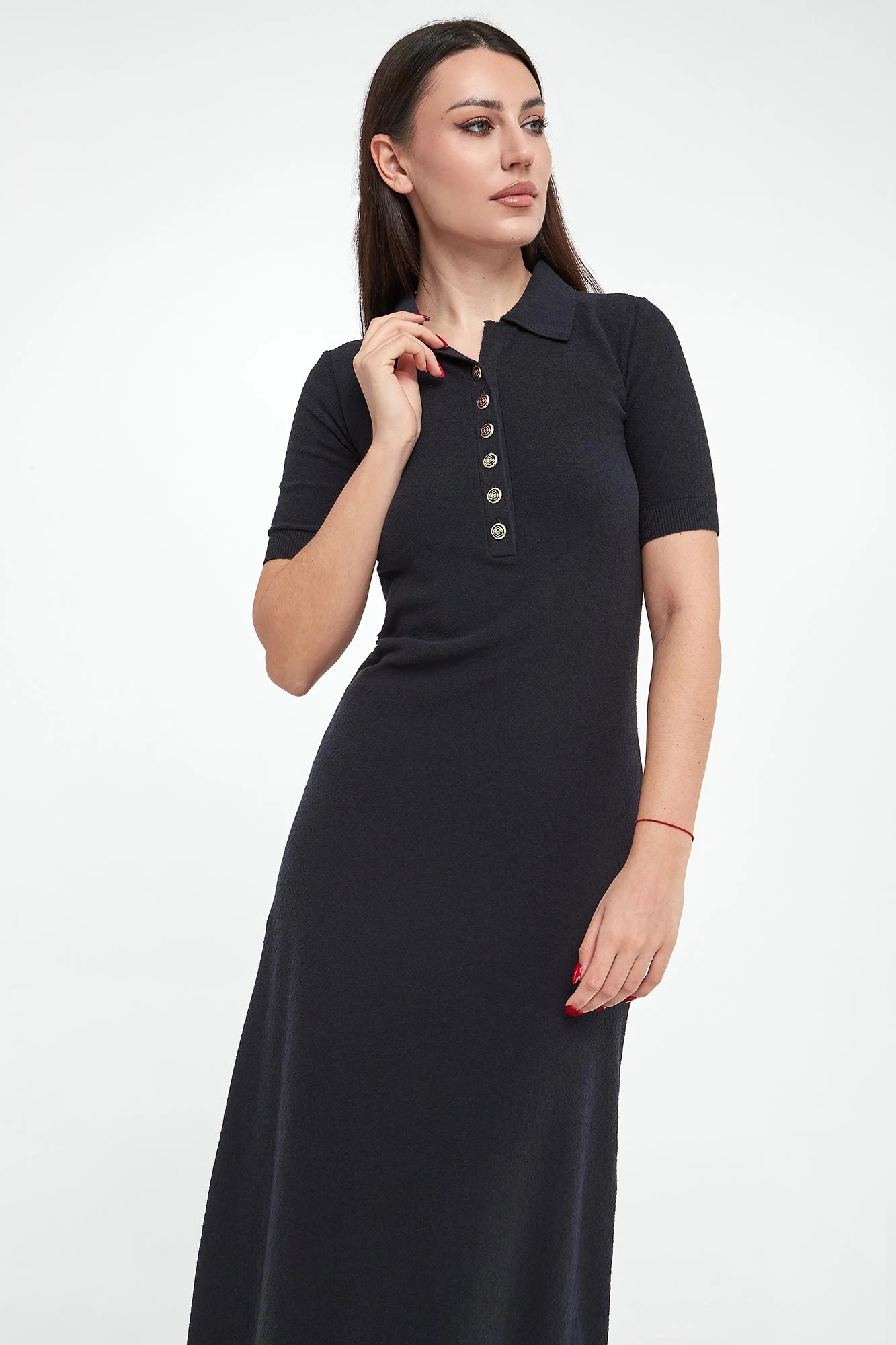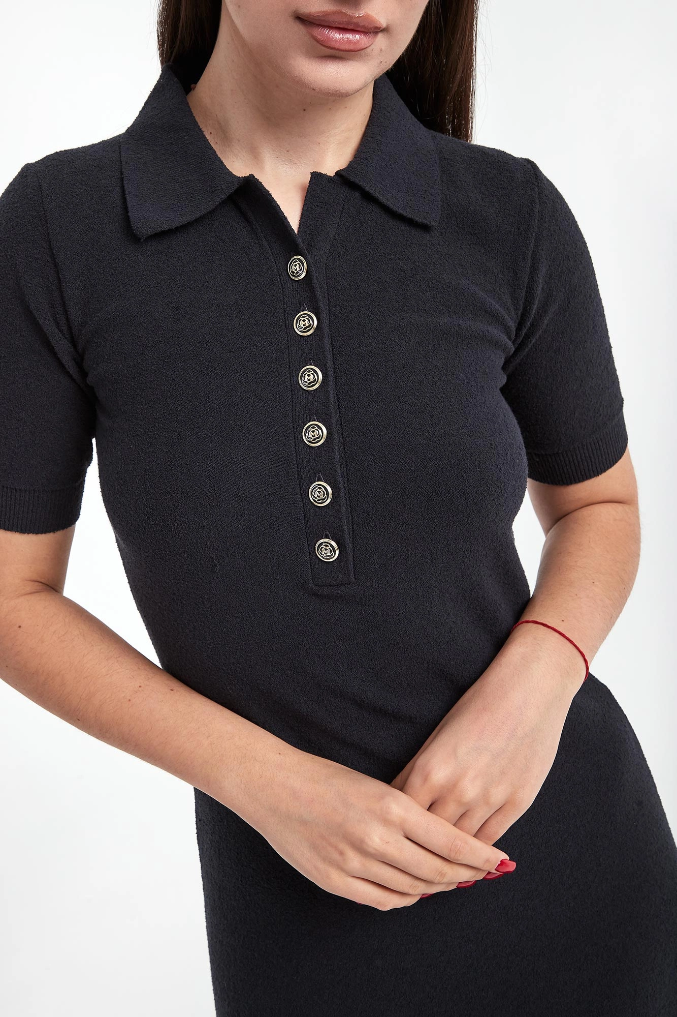 - Dekolt v-neck z zapięciem na guziki.