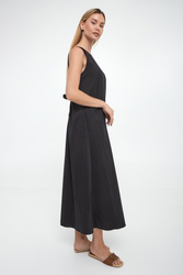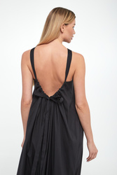 - Z tyłu głęboki dekolt i wiązanie.