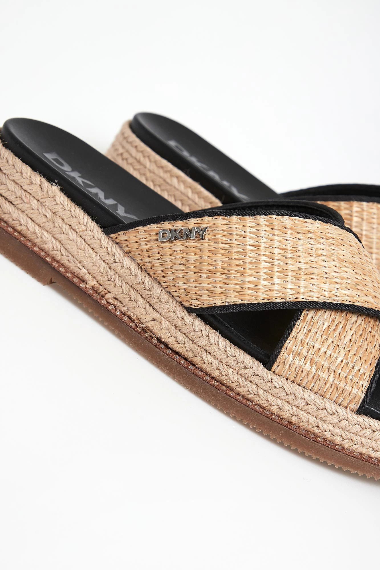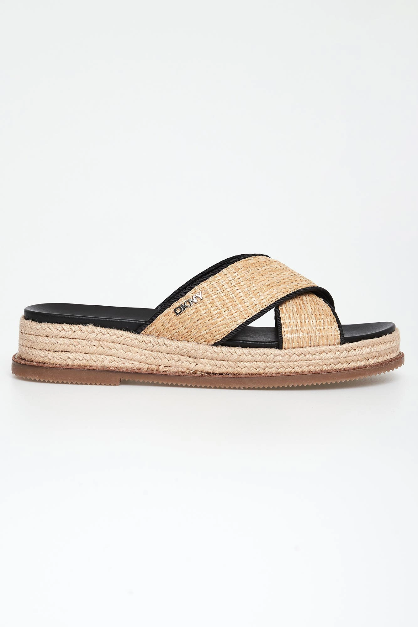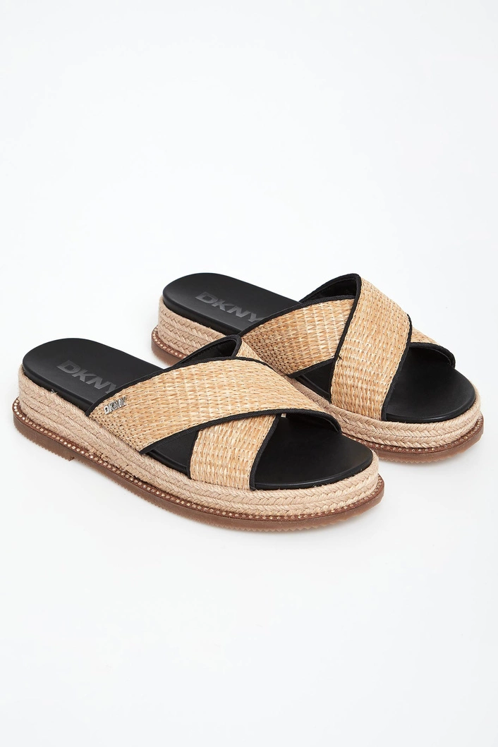 Klapki damskie marki DKNY.