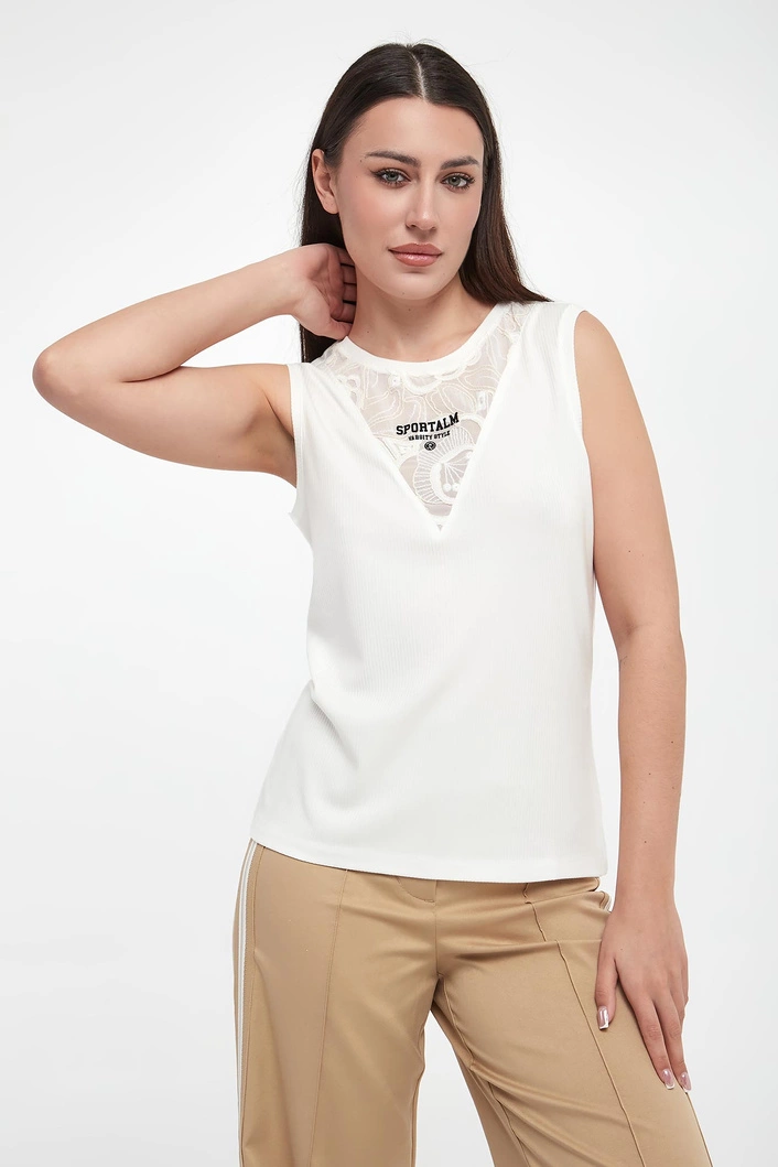 - Na froncie półtransparentna wstawka z haftami oraz nadrukiem z logo.
