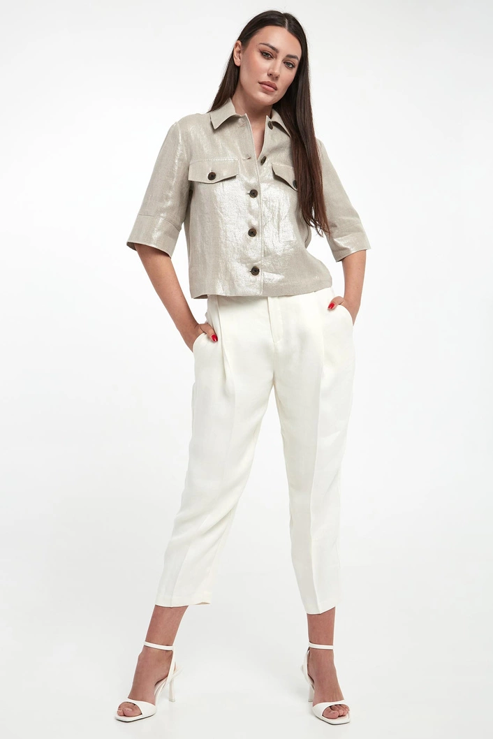 Modelka na zdjęciu, przy wzroście 177 cm, ma na sobie włoski rozmiar 40, który odpowiada polskiemu rozmiarowi 36.