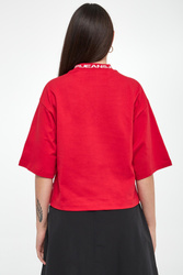 - Dekolt o-neck z logowanym ściągaczem.