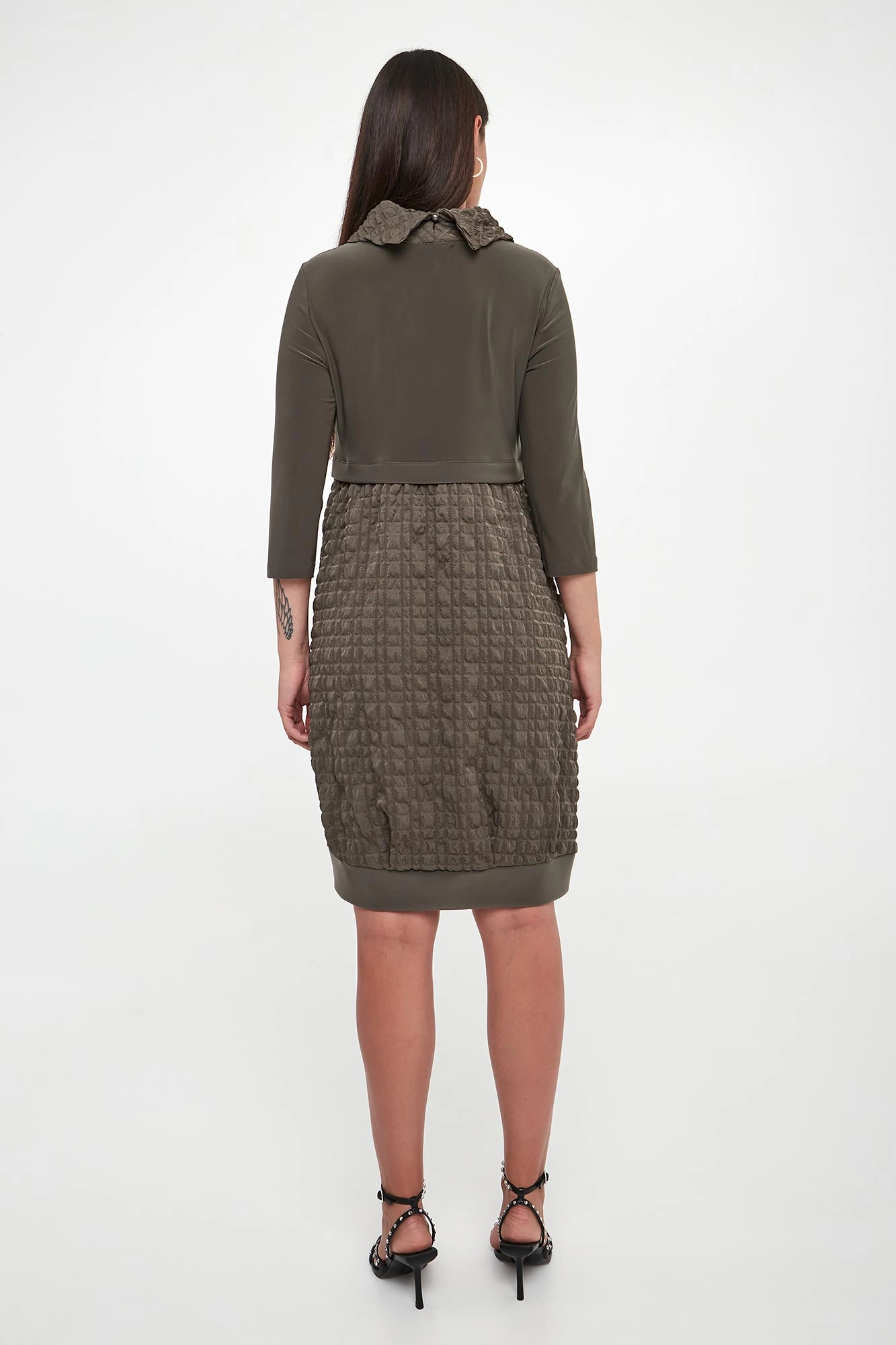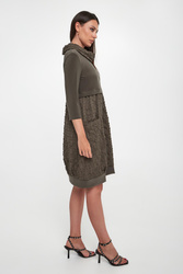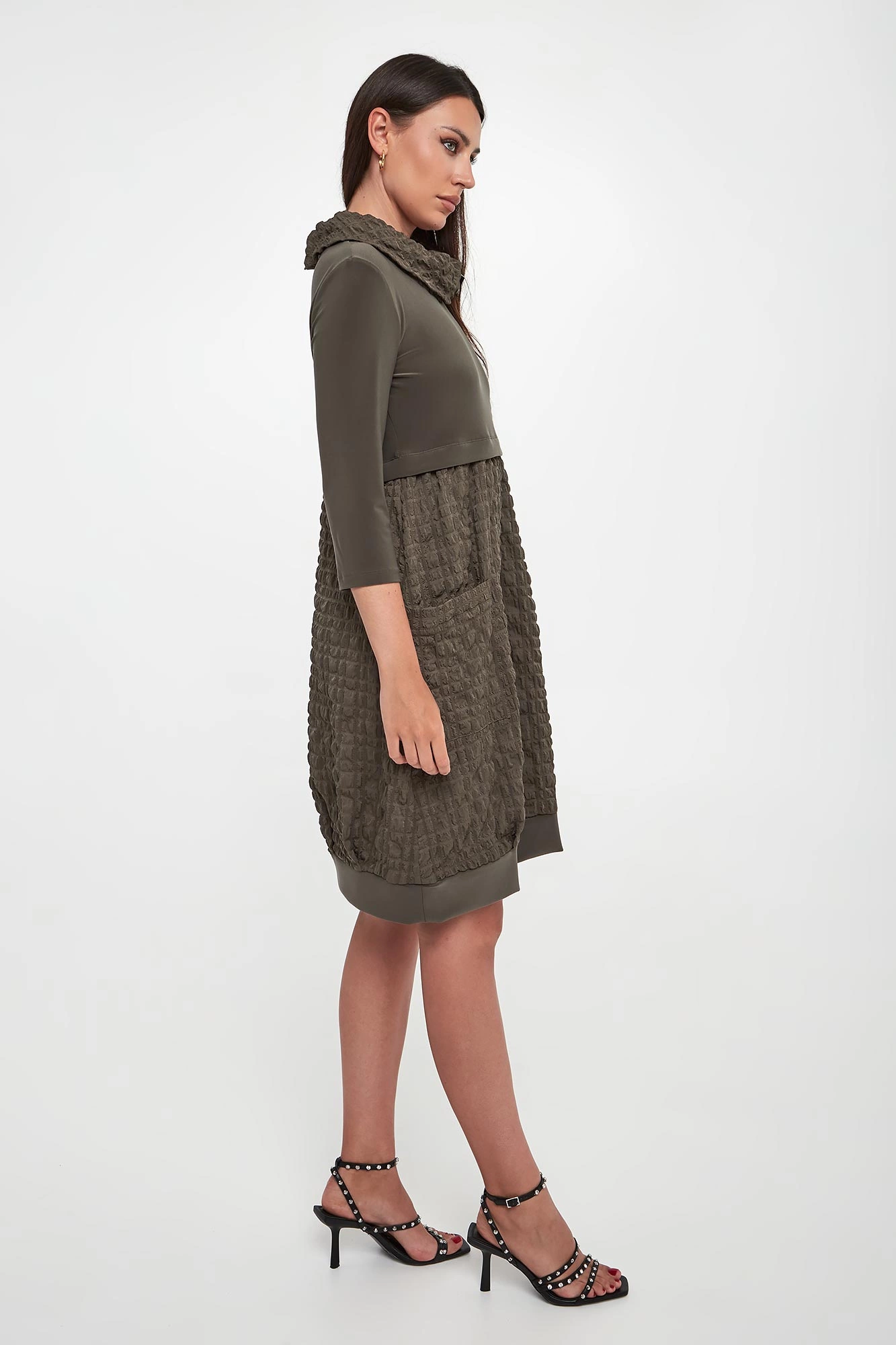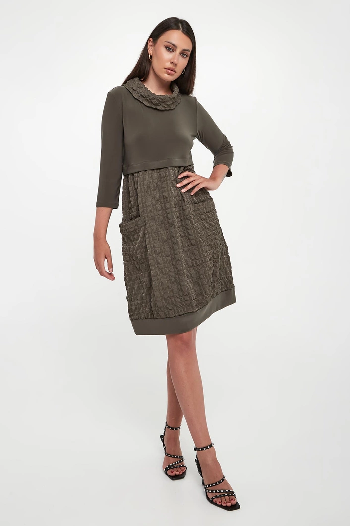- Marszczony dekolt i dół wykonany ze strukturalnej tkaniny.