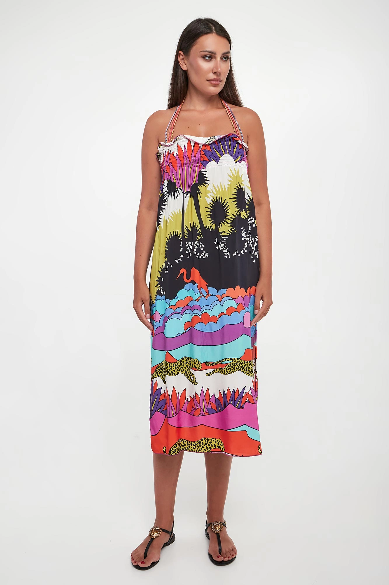 - Gumowana taśma przy dekolcie przytrzymująca sukienkę.