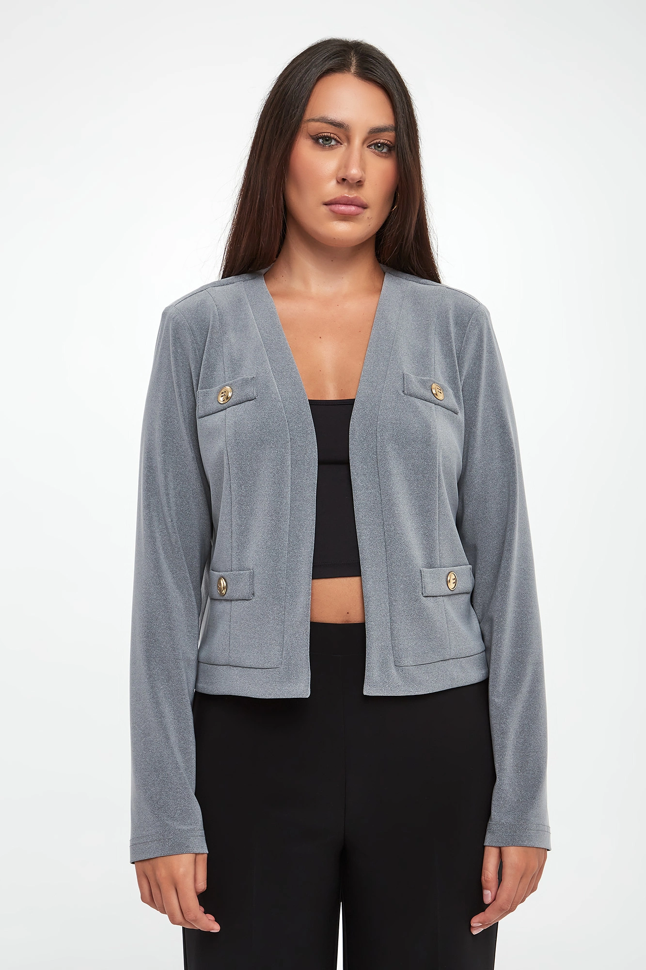 - Imitacja kieszeni ze złotymi guzikami.