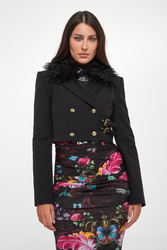 - Kołnierz ozdobiony odpinanym futrem.