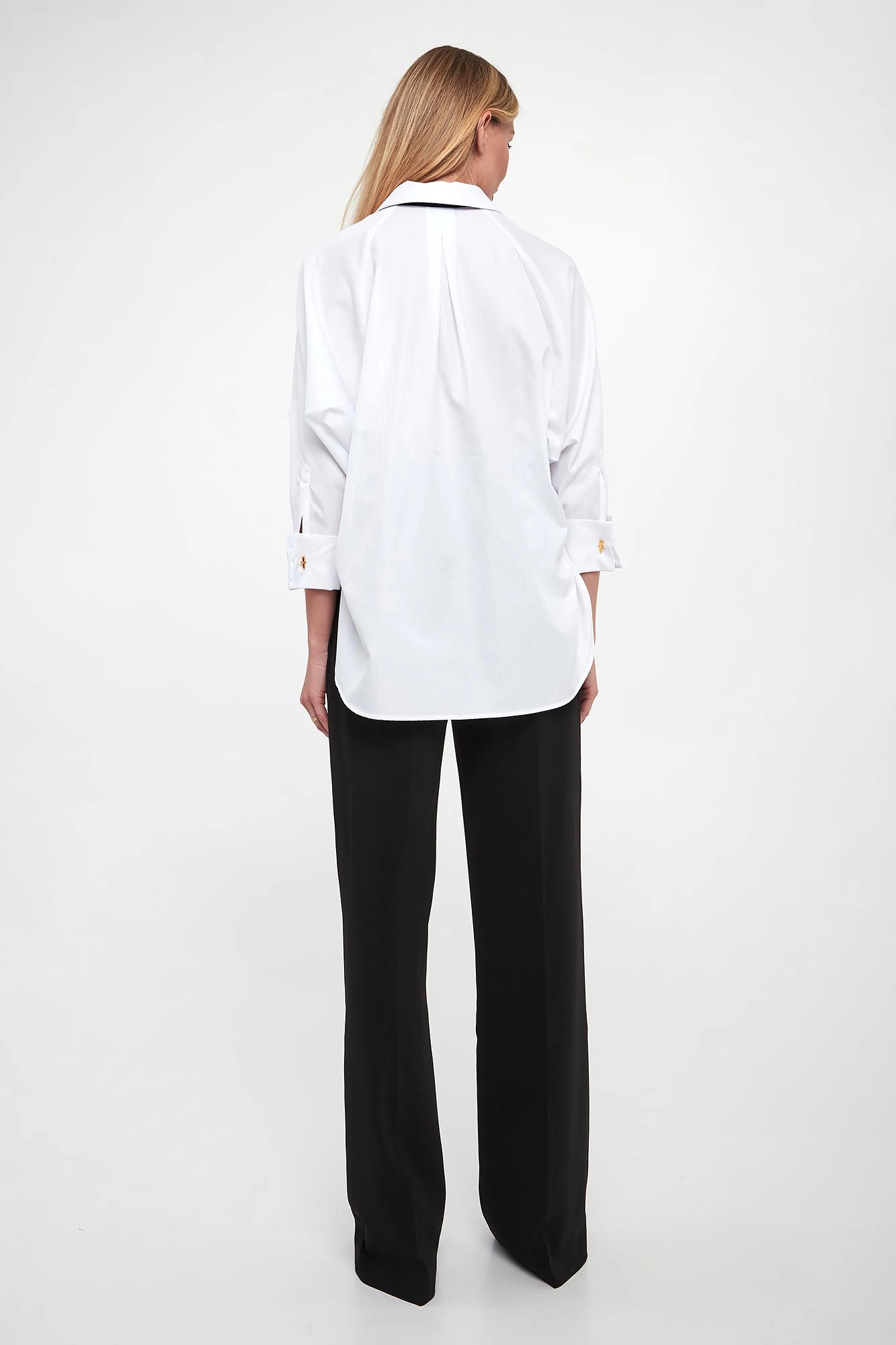 - Rękawy wykończone mankietami z ozdobnym guzikiem.