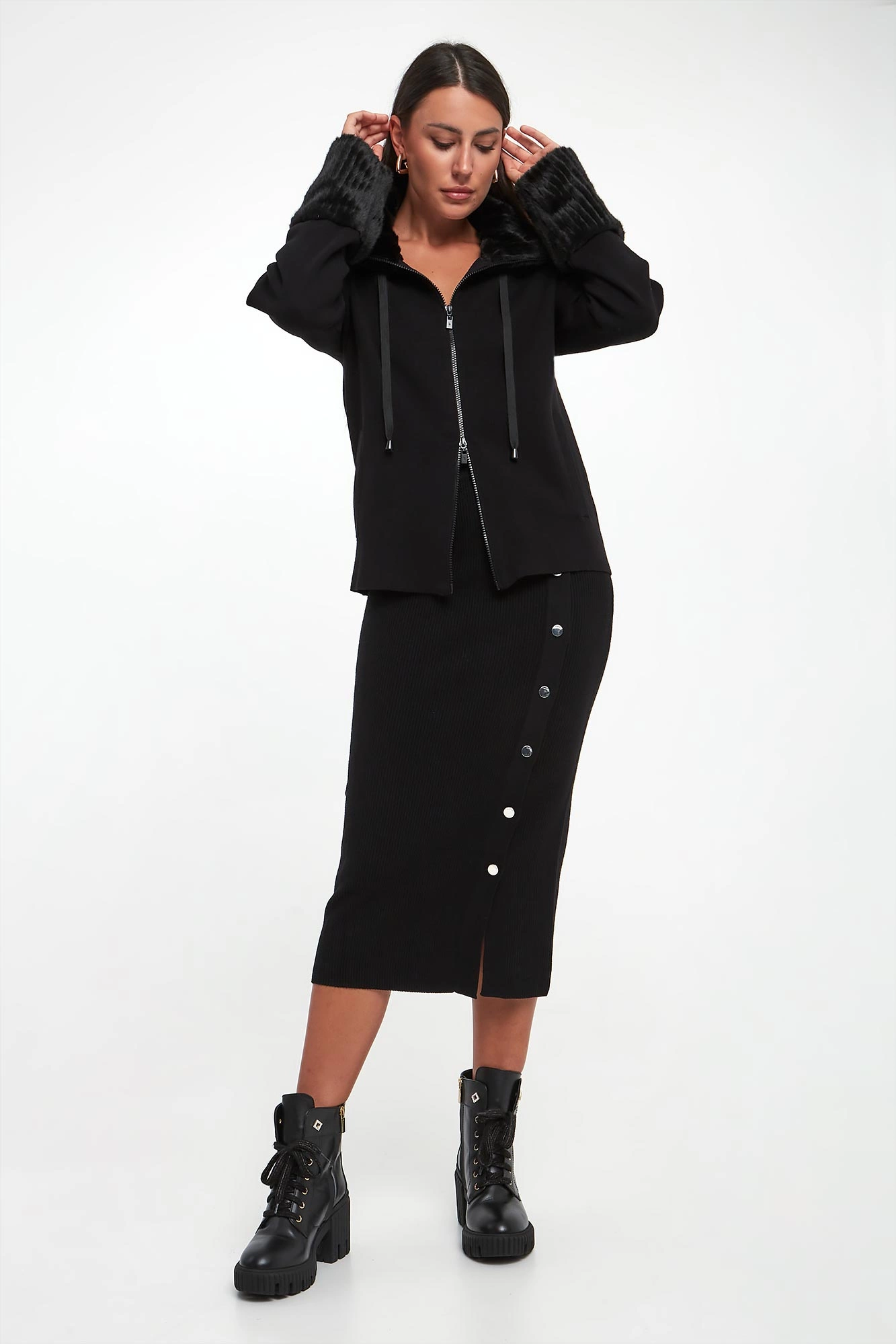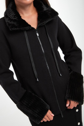 - Kołnierz wykończony futerkiem, regulowany troczkami.