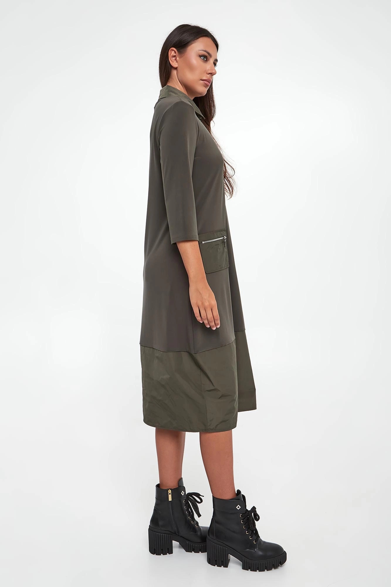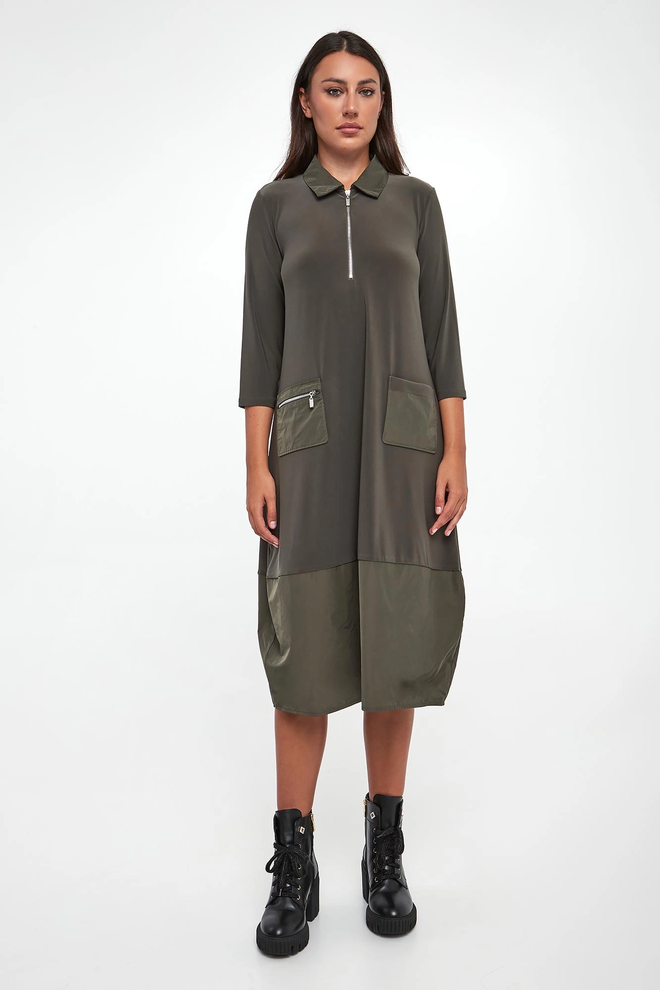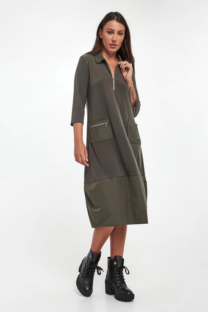- Dekolt v-neck z kołnierzykiem zapinanym na zamek.