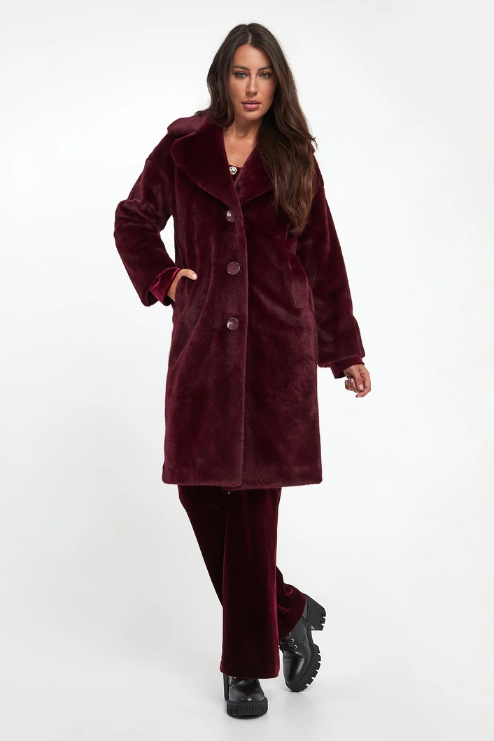 SALEErmanno FirenzePłaszcz damski wełniany z futrem ERMANNO FIRENZE