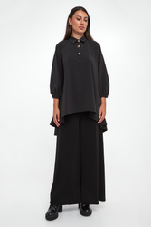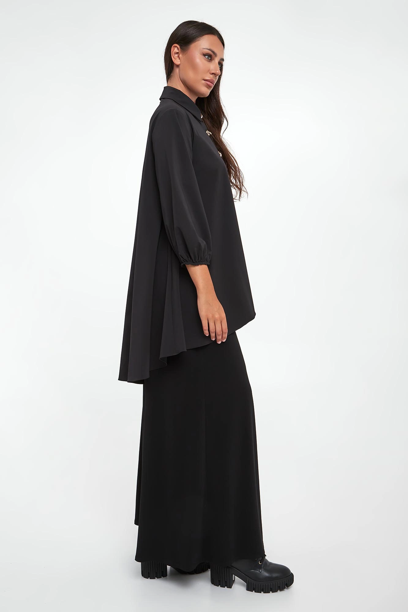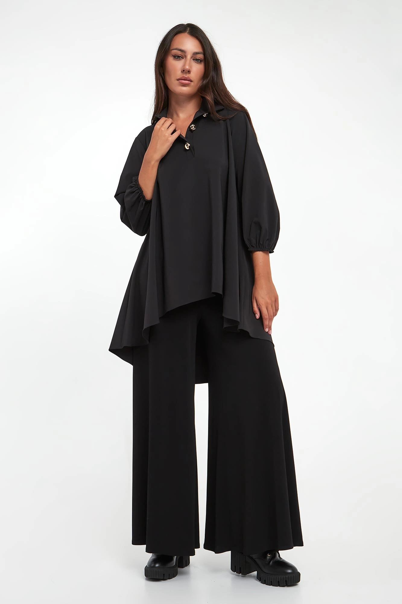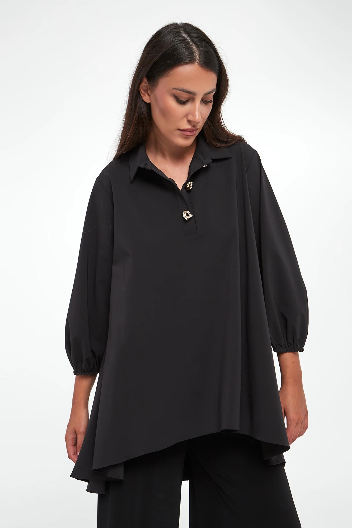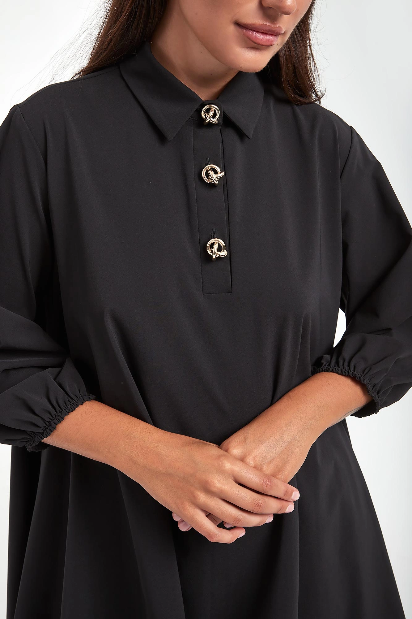 - Dekolt v-neck z kołnierzykiem i biżuteryjnymi guzikami.