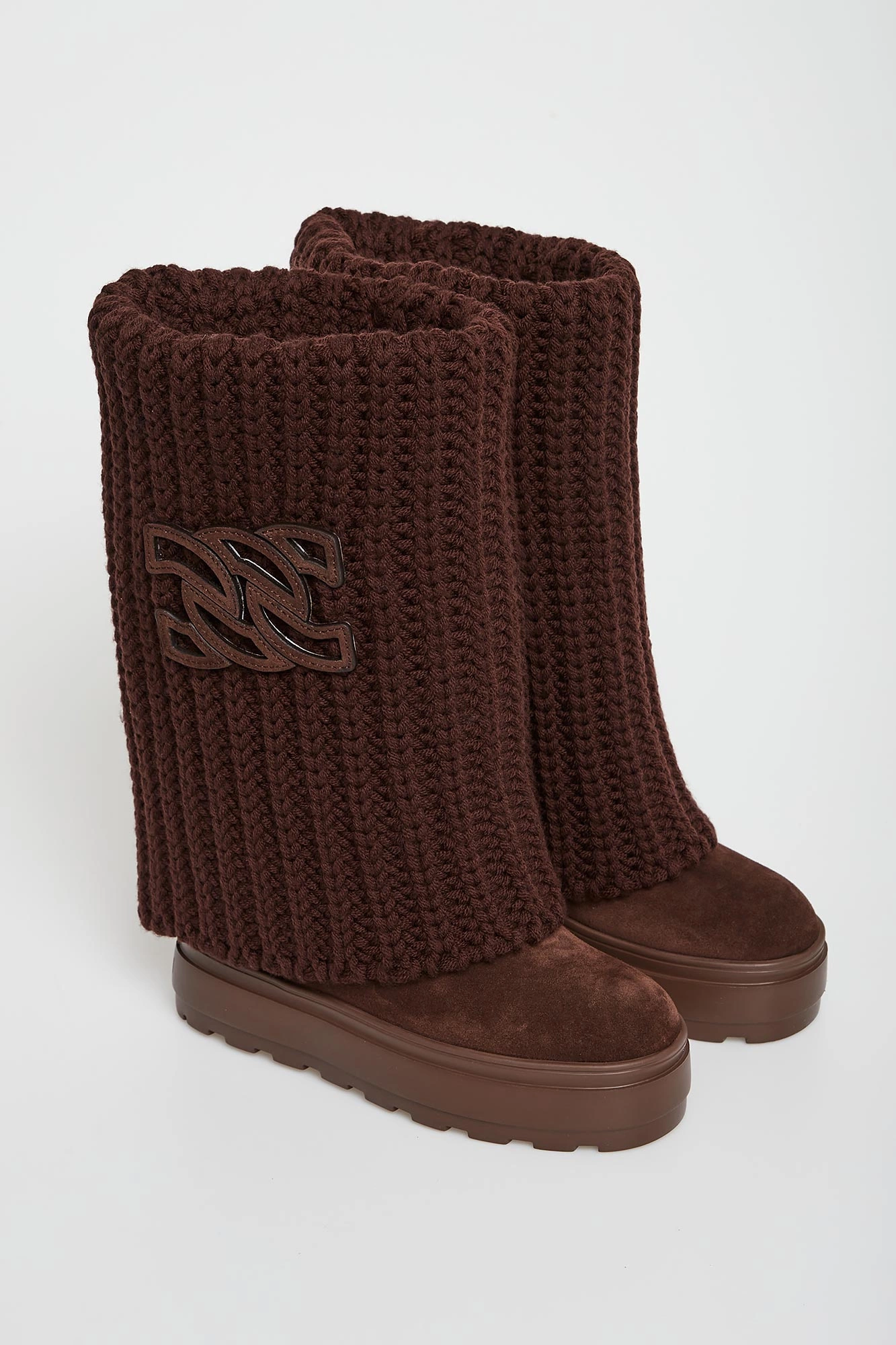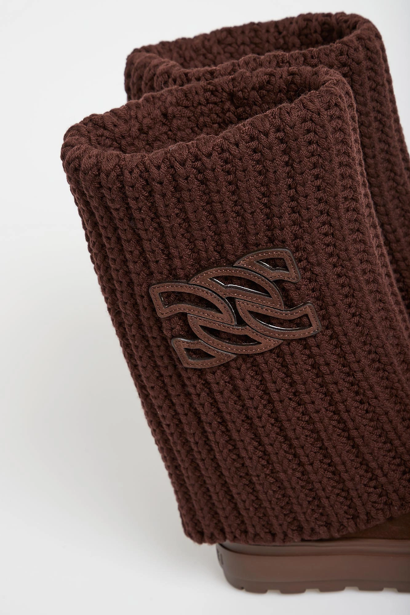 - Wywijana wysoka cholewka z warkoczowym splotem.