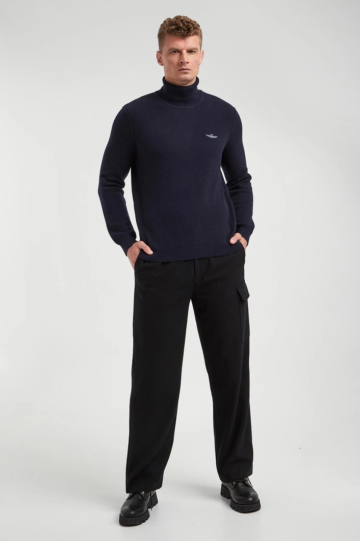 Model na zdjęciu, przy wzroście 194 cm, ma na sobie rozmiar 34.