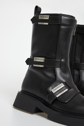 - Ozdobione metalowymi elementami z nazwą marki.