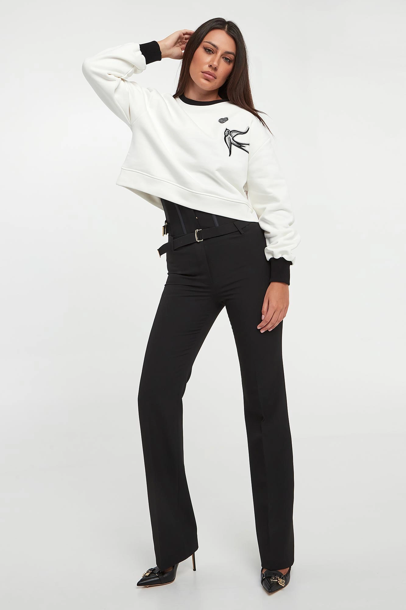 - Ściągacze w kontrastowym, czarnym kolorze.