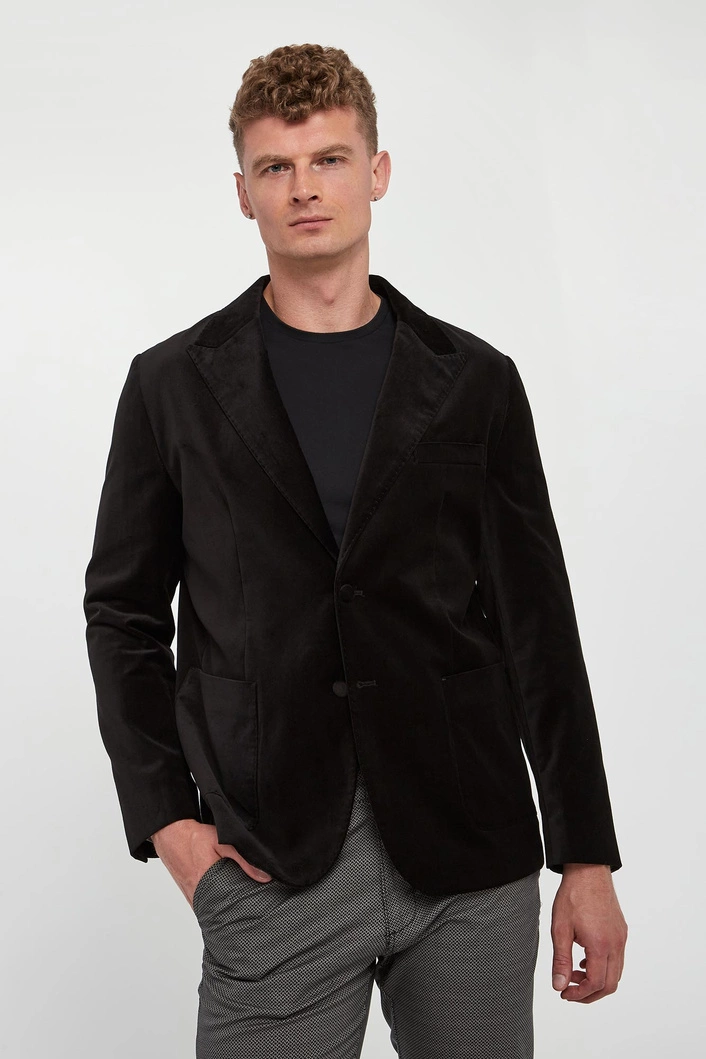 Model na zdjęciu, przy wzroście 194 cm, ma na sobie rozmiar 52.
