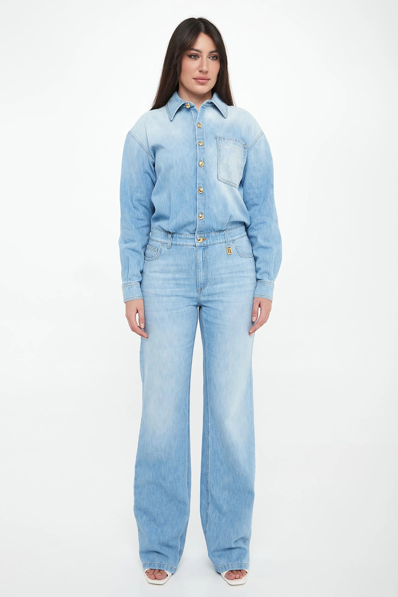 - Szlufki w pasie z aplikacjami w kształcie logo.