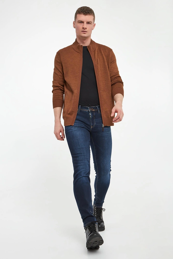 Model na zdjęciu, przy wzroście 194 cm, ma na sobie rozmiar 34/32.