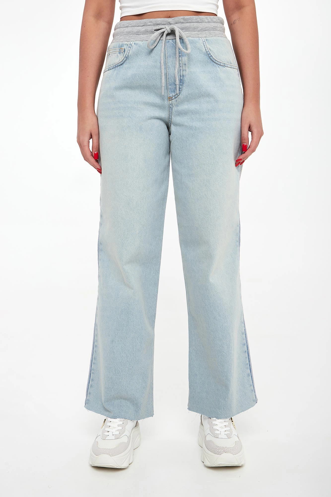 - Z przodu bawełniany denim.