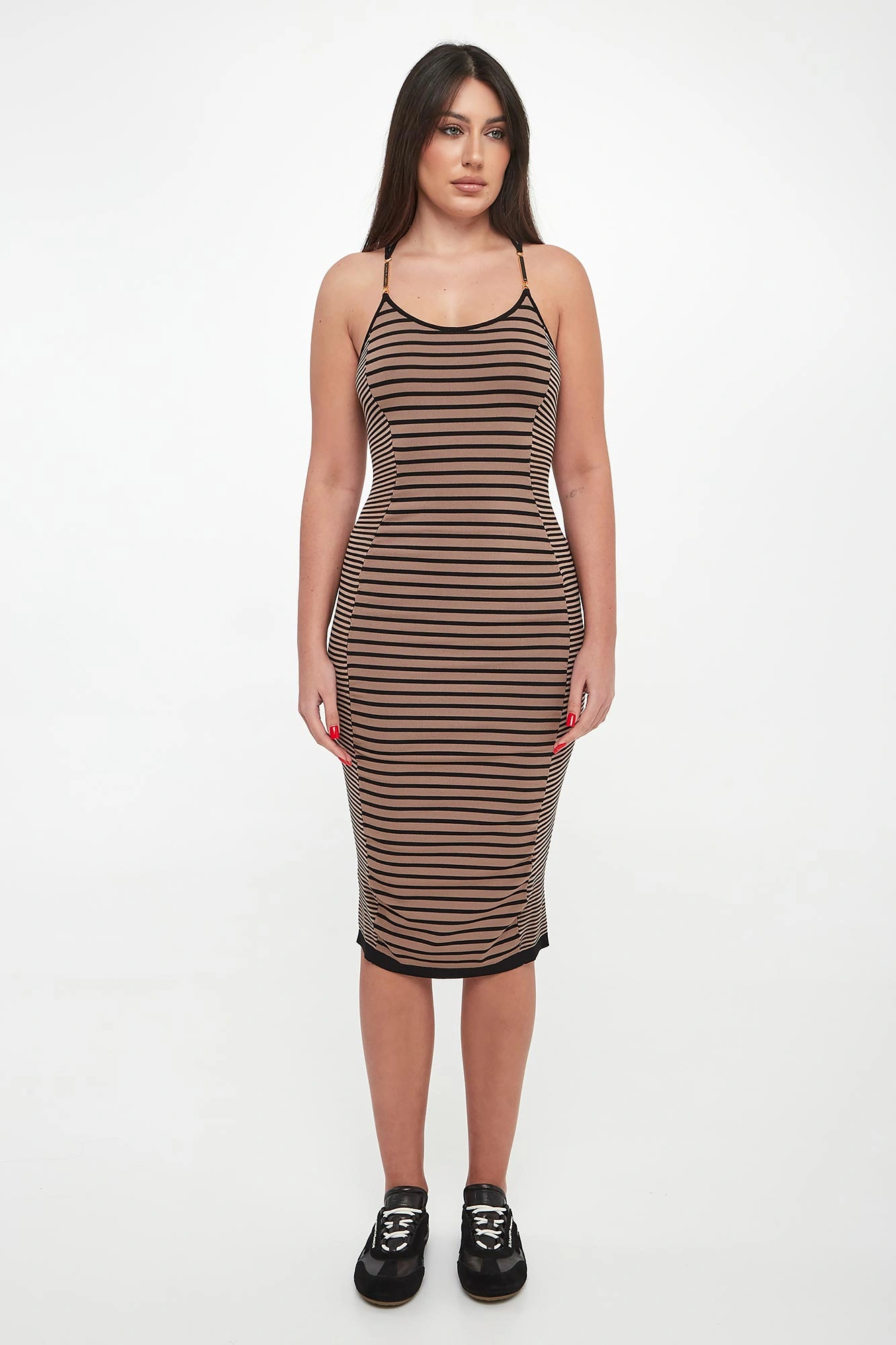 - Wzór w czarne paski.