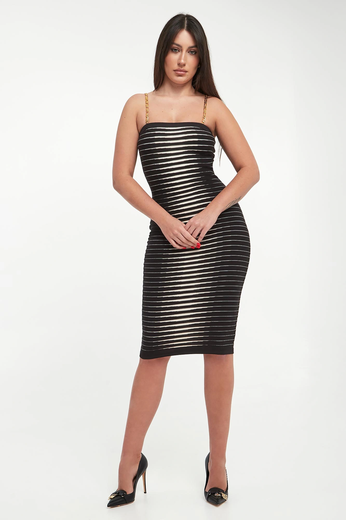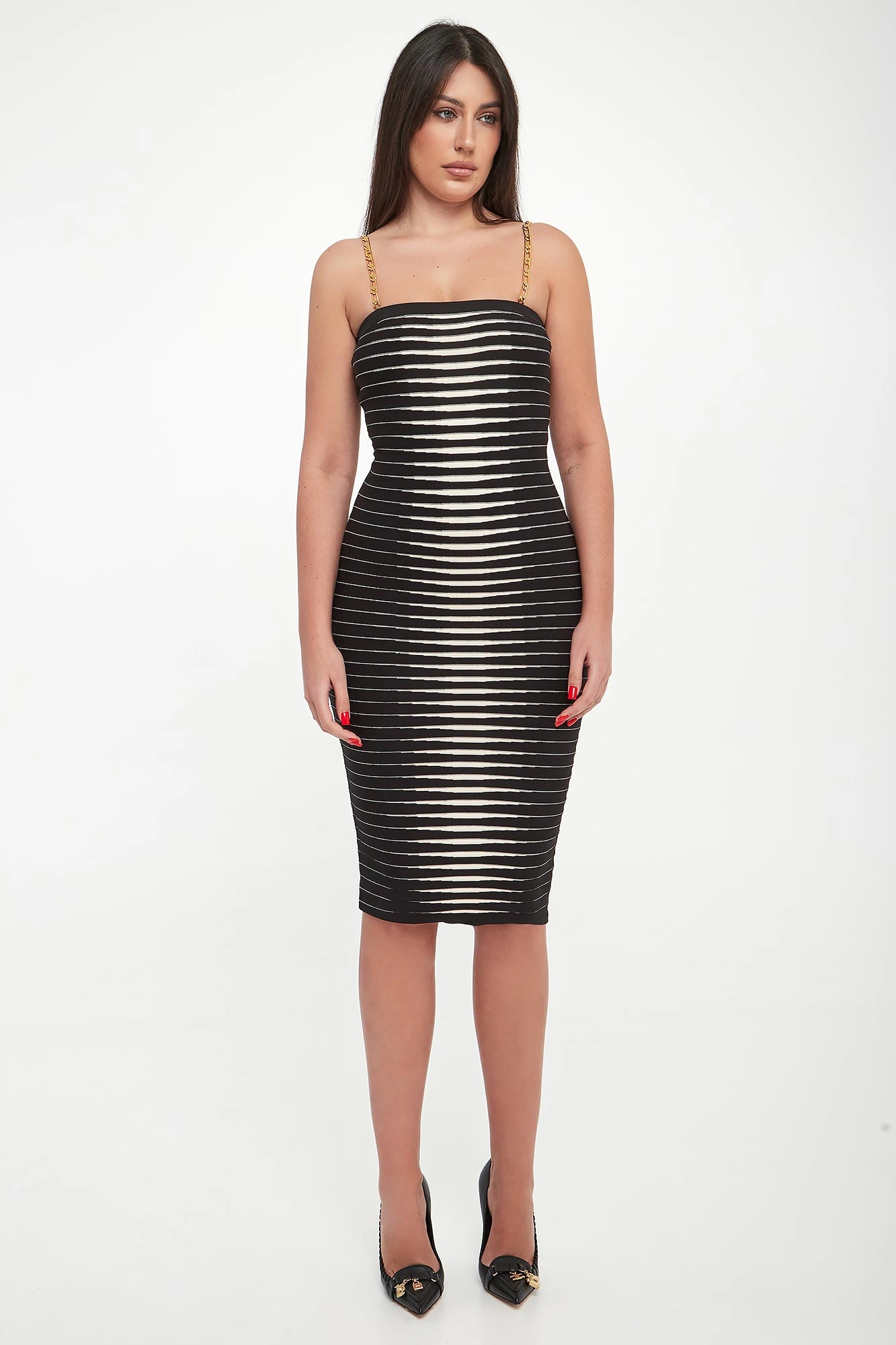 - Ramiączka w postaci złotych łańcuszkach z możliwością odpięcia.
