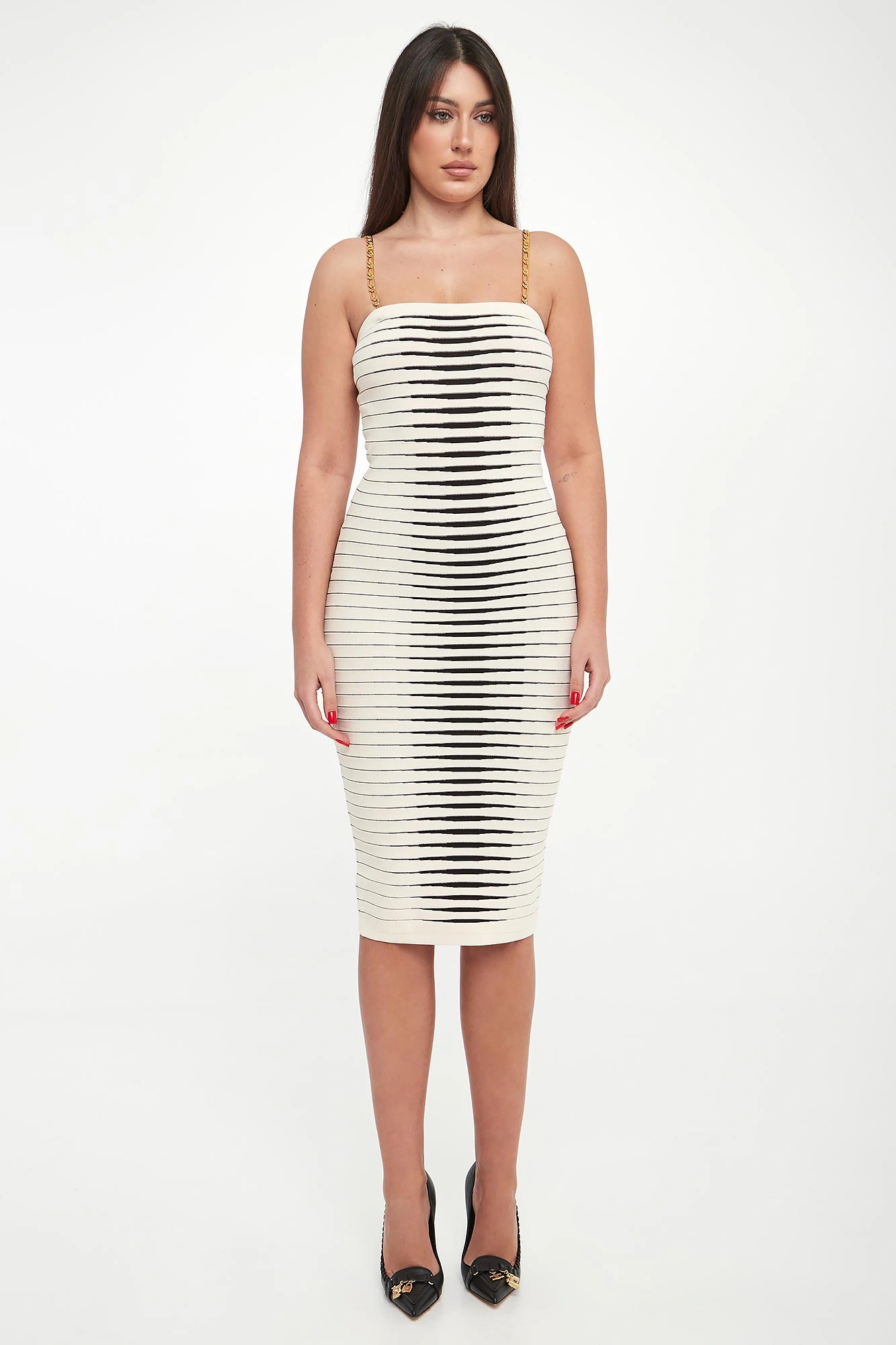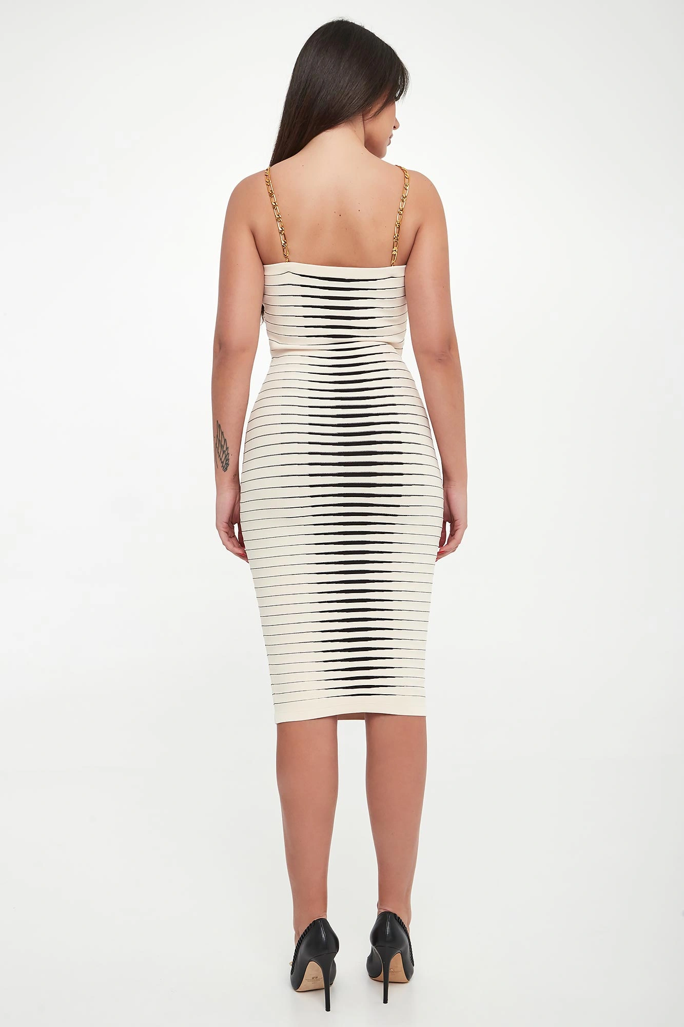 - Ramiączka w postaci złotych łańcuszkach z możliwością odpięcia.