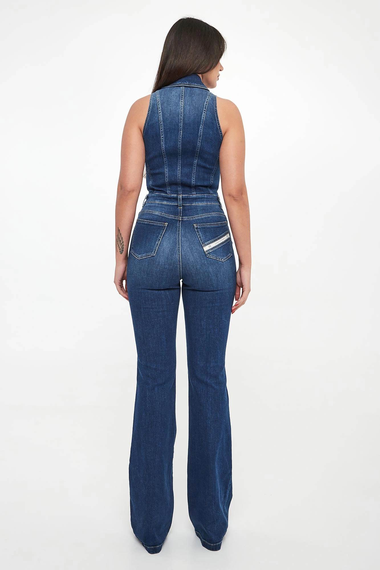 - Długie nogawki flared.