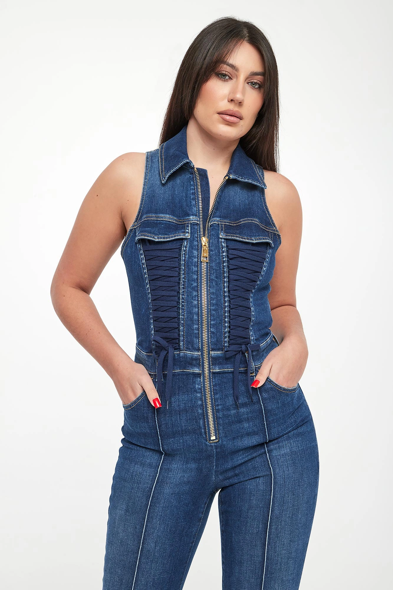 - Na froncie ozdobne sznurowanie.