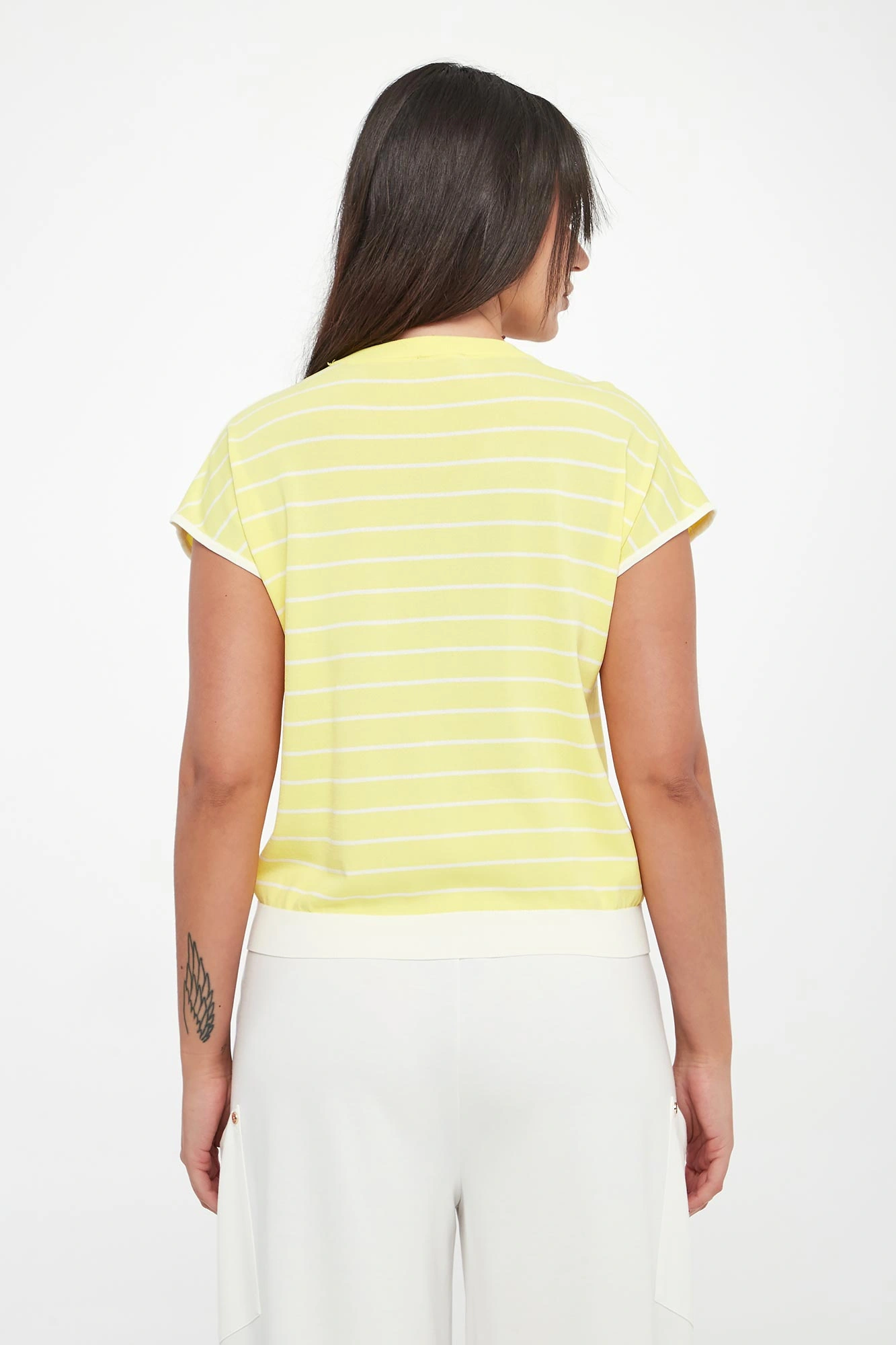 - Wzór w białe paski.