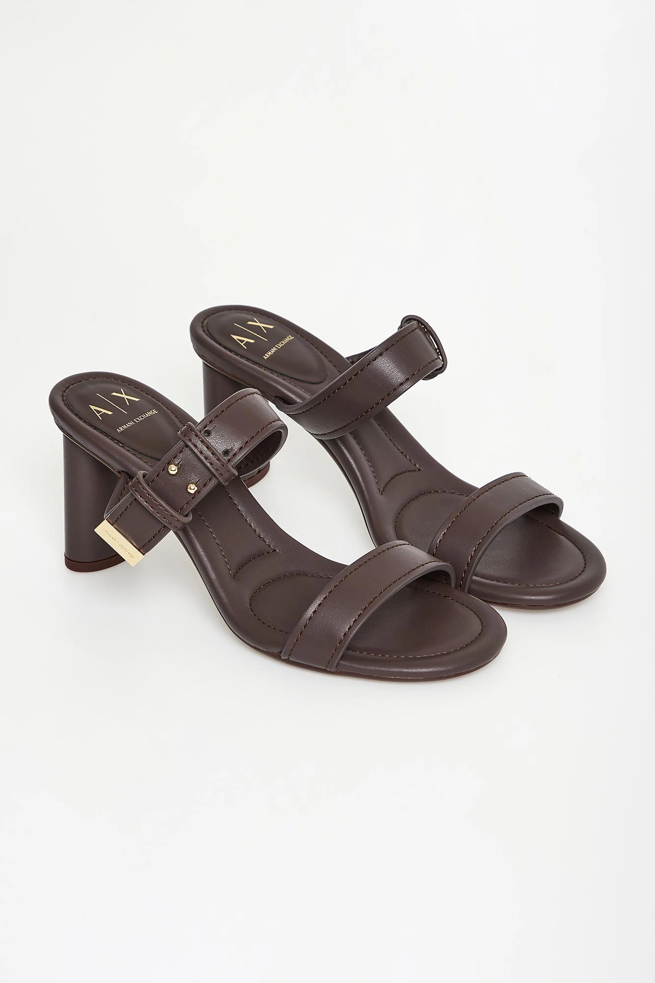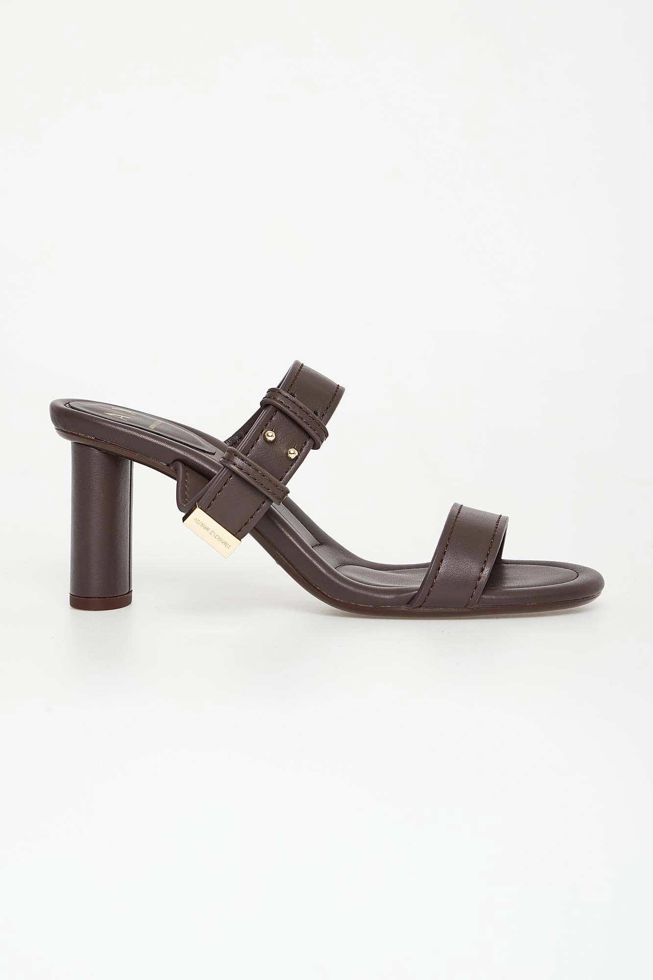 Klapki na obcasie marki Armani Exchange.