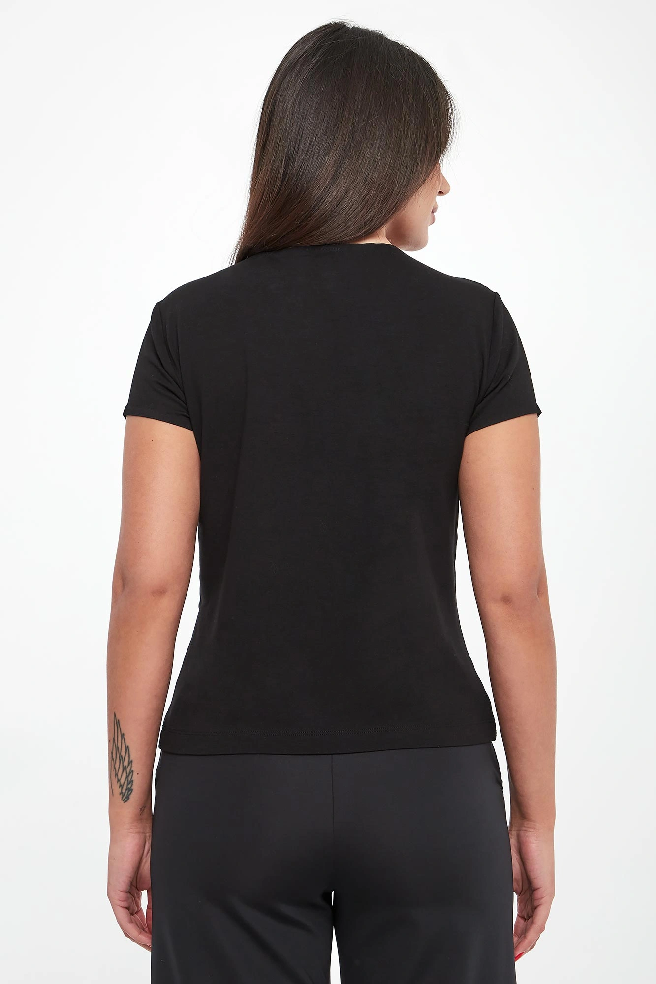 Modelka na zdjęciu, przy wzroście 177 cm, ma na sobie rozmiar 34.