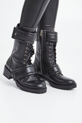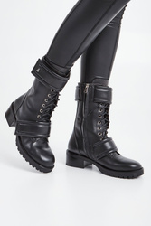 Trapery marki Patrizia Pepe w czarnym kolorze. Wiązane na sznurówki, po bokach zapinane na zamek w kolorze butów. Po boku niewielka, metalowa aplikacja z logo marki. U góry oraz u dołu ozdobne rzepy. Wewnątrz wkładka ze skóry naturalnej. Wykonane z gładkiej, naturalnej skóry. Niezwykle stylowe i efektowne, w rockowym stylu. Wysokość podeszwy wynosi około 5 cm.