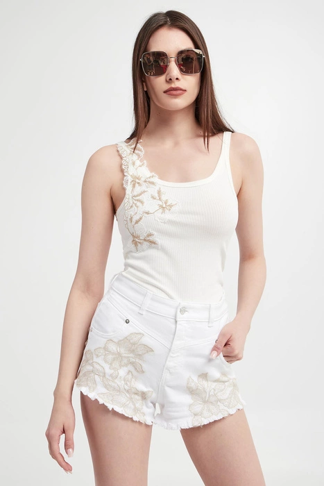 Top damski dzianinowy ELISABETTA FRANCHI Ecru Slim