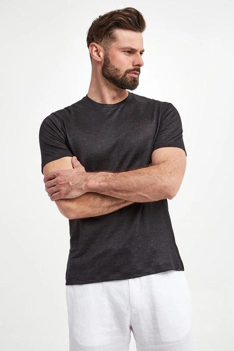 T-shirt męski lniany PAUL&SHARK Czarny Slim
