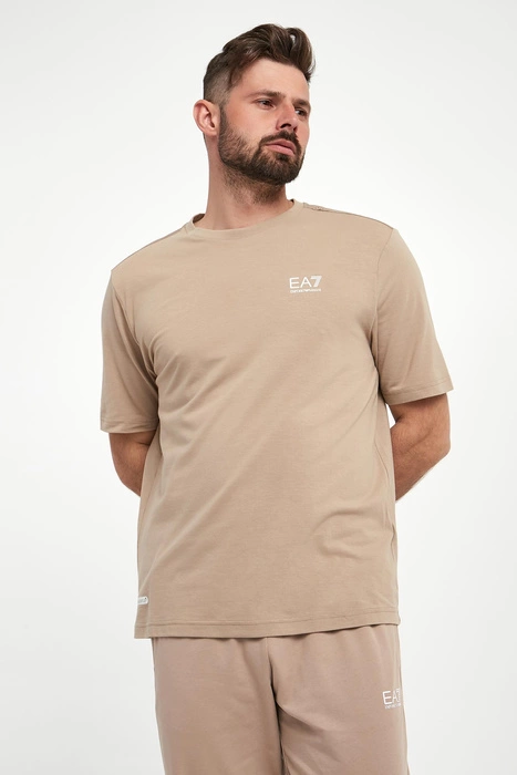 T-shirt męski EA7 EMPORIO ARMANI Beżowy Regular